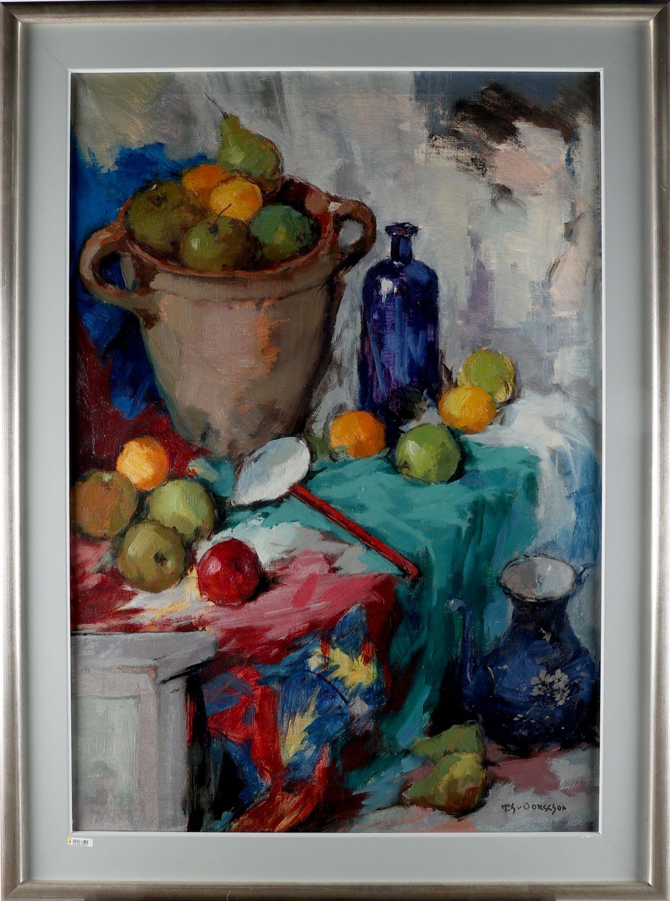 Theodorus van Oorschot (1910-1989), Stilleven met fruit, olieverf op doek, 100 x 70 cm.