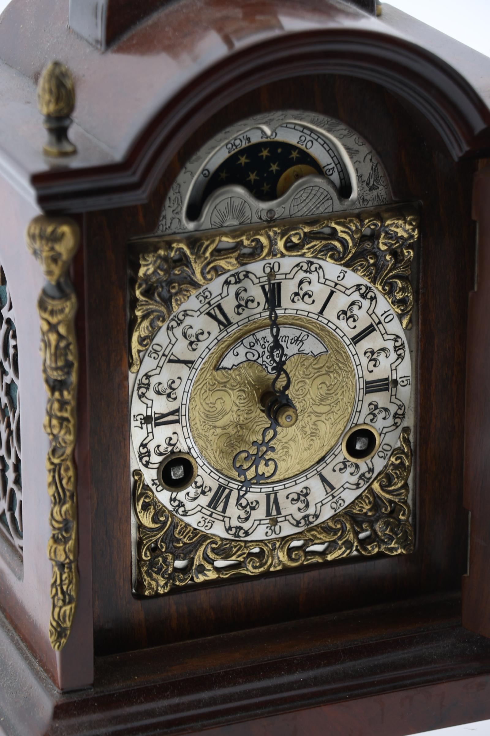 Oude wortelnotenhouten Engelse tafelklok, h.25 cm.