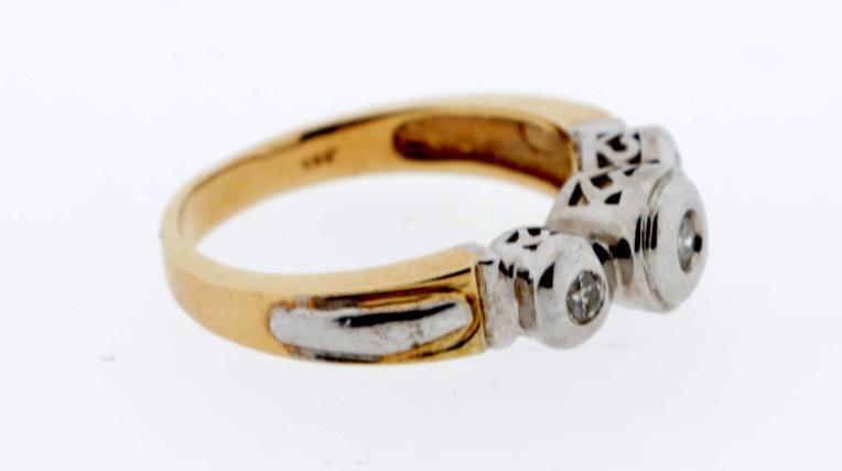 Gouden dames/herenring bezet met briljant geslepen diamant, diam.19 mm., 7.5 gram