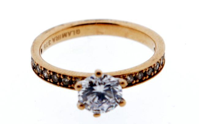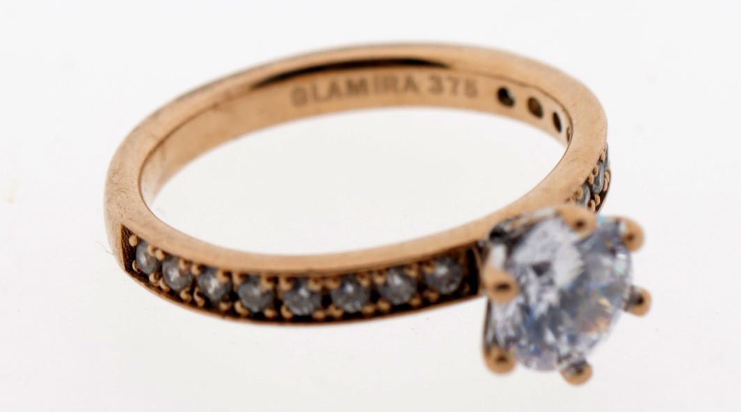 Gouden damesring bezet met briljant geslepen diamant en zirkonia, diam.17 mm.
