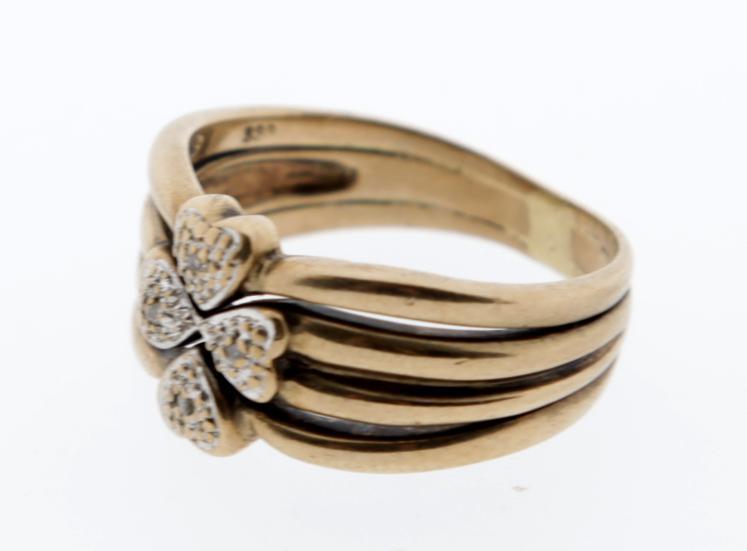 Gouden damesring bezet met briljant geslepen diamant, diam.18 mm., 5 gram