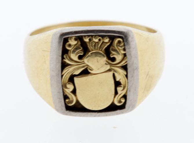 Gouden heren/wapenring, diam.22 mm., 14.5 gram