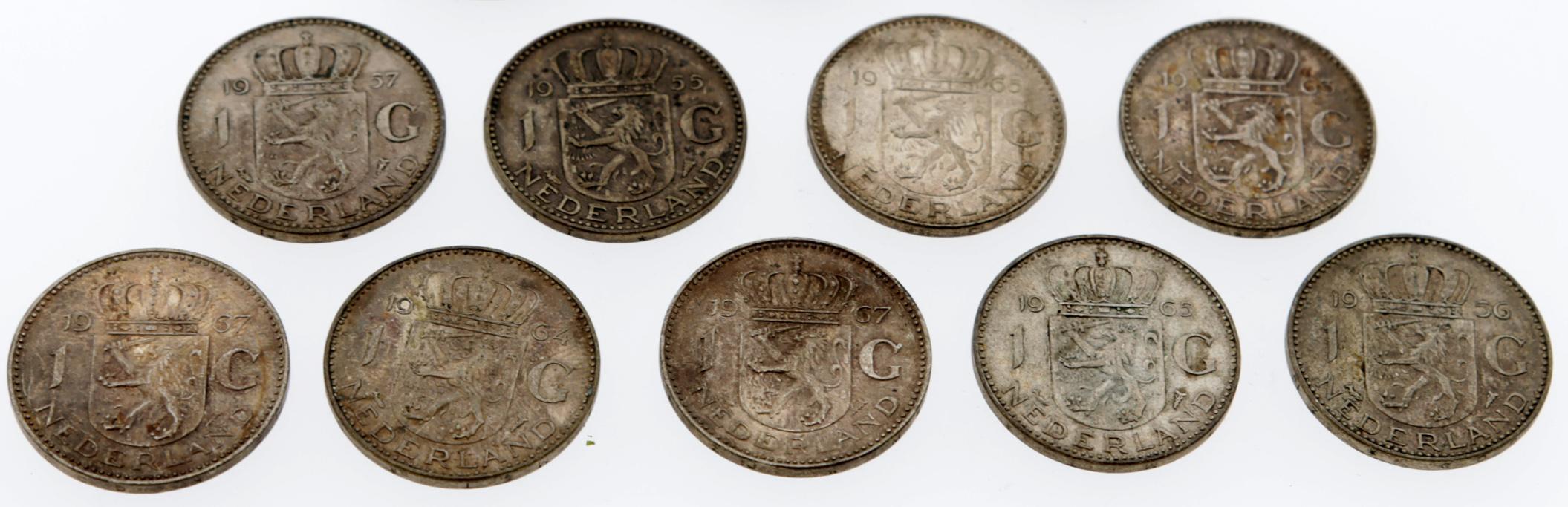 15 Zilveren gulden mutstukken, Koningin Juliana, diverse jaren, zilver gewicht 100 gram