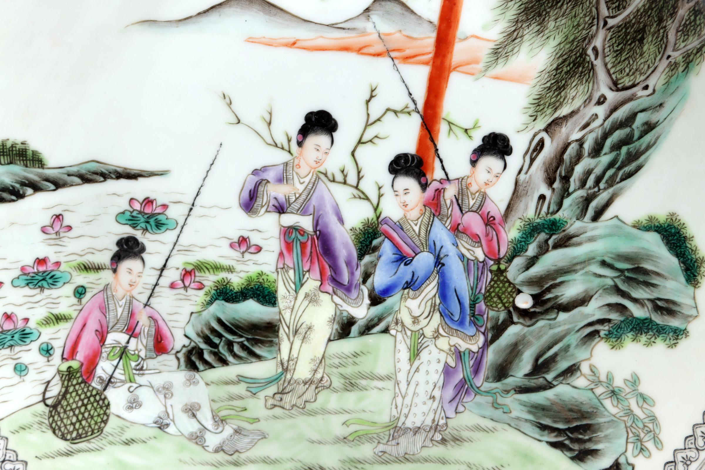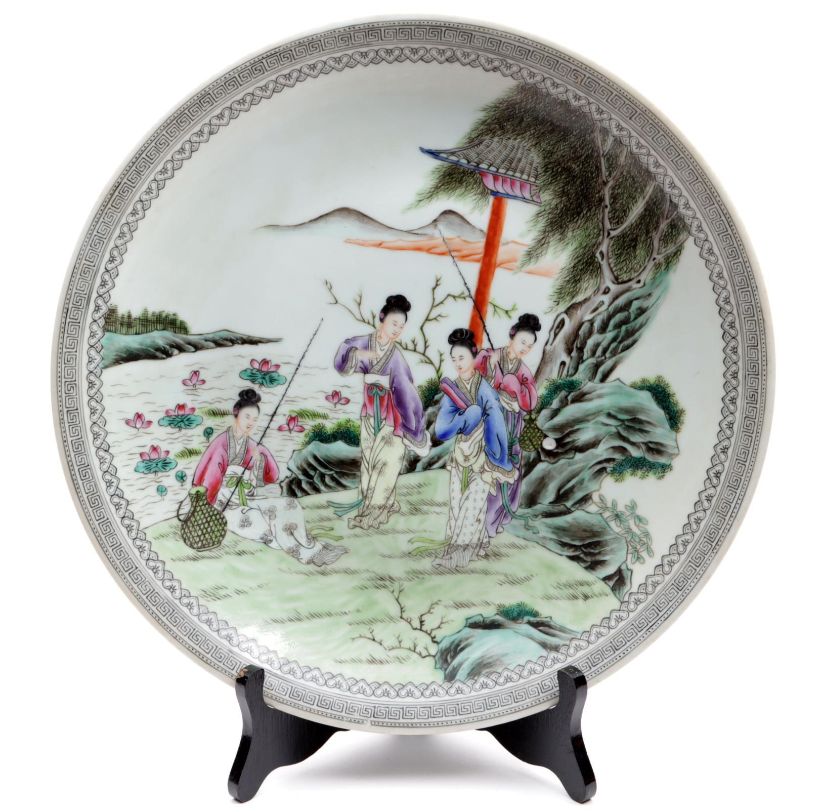 Chinees porseleinen schotel met decor van personen, diam.34 cm.