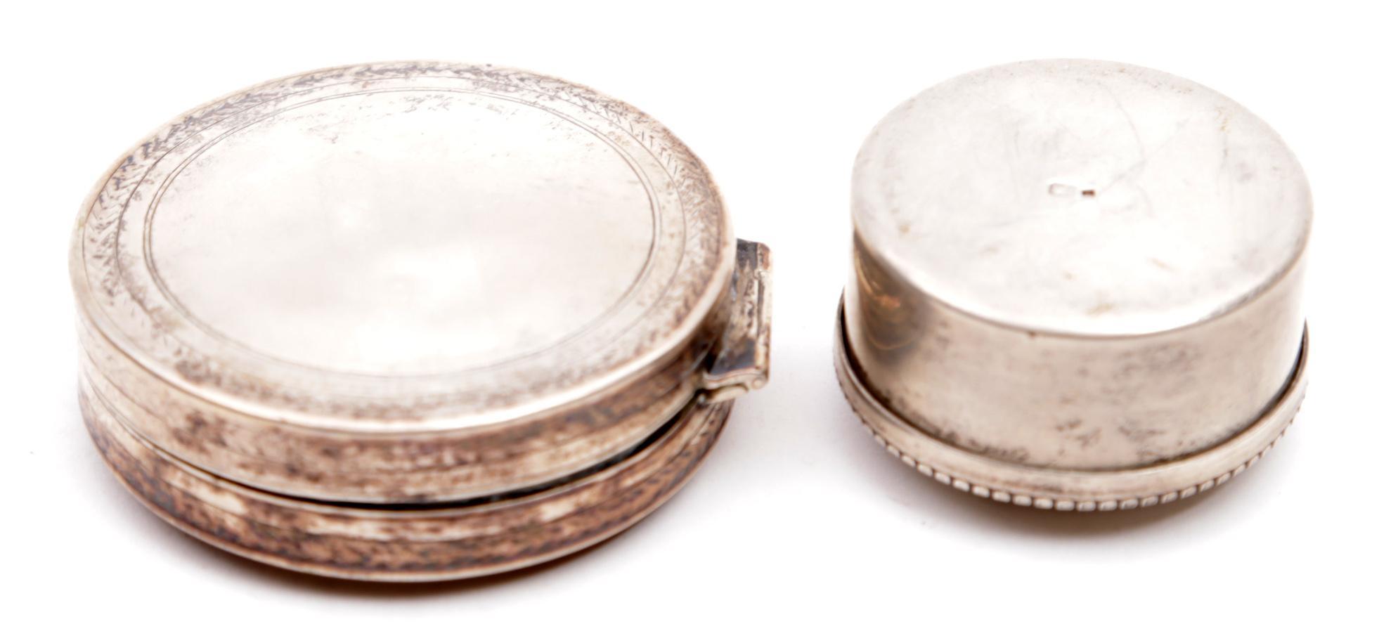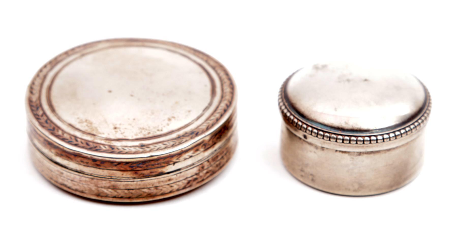 2 Diverse antieke zilveren doosjes, ca.60 gram