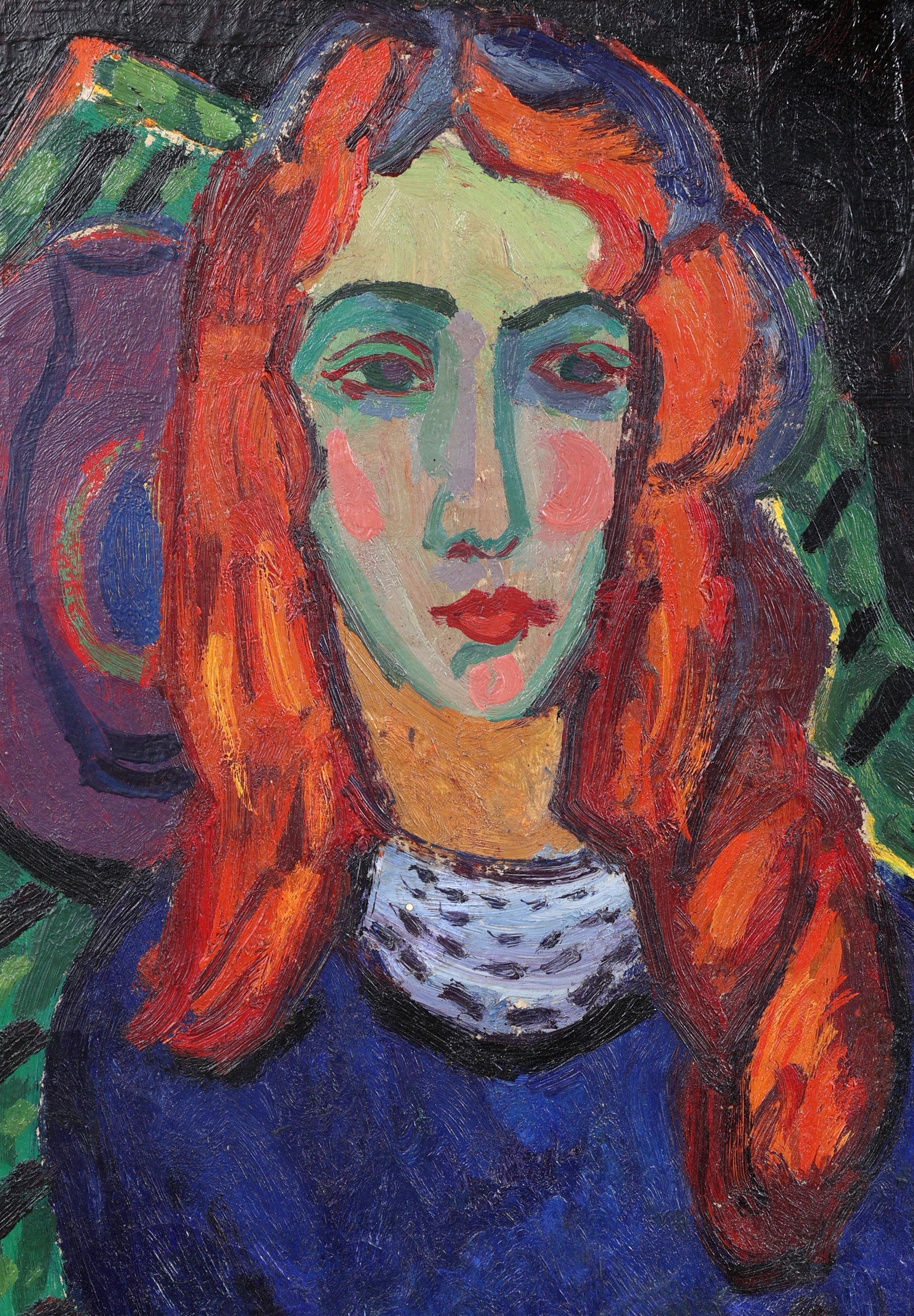 Christiaan 'Karel' Appel (1921-2006), Portret van Jeake Hansma (1947), olieverf op doek, gesigneerd en gedateerd, annotatie verso "voor Jeake Hansma van Karel ter herinnering aan onze vriendschap", 47 x 37 cm. Provenance: Collectie Jeake Hansma, Amsterdam; Amcha Kunstcollectie, 2004; Collectie kunsthandel Elisabeth den Bieman de Haas, Amsterdam. Literatuur: E. den Bieman de Haas, La Femme: Schilderijen & Beelden, Van Spijk, Venlo, 1992, cover & p. 1 (ill.). Tentoonstelling: Kunsthandel Elisabeth den Bieman de Haas, Amsterdam, La Femme: Schilderijen & Beelden, 1992. Nota bene: geregistreerd bij het RKD met nummer 167807