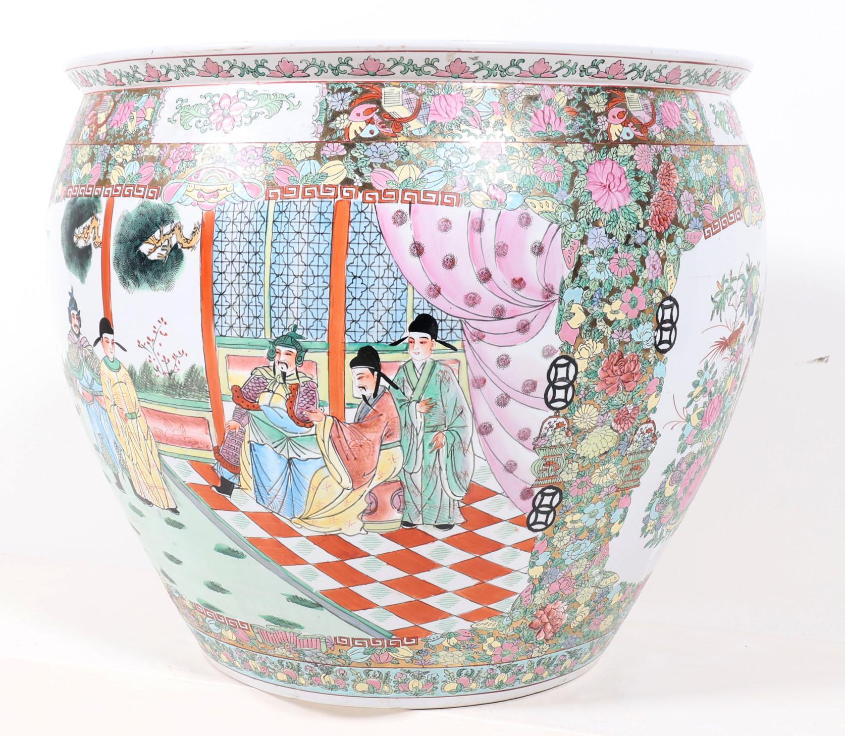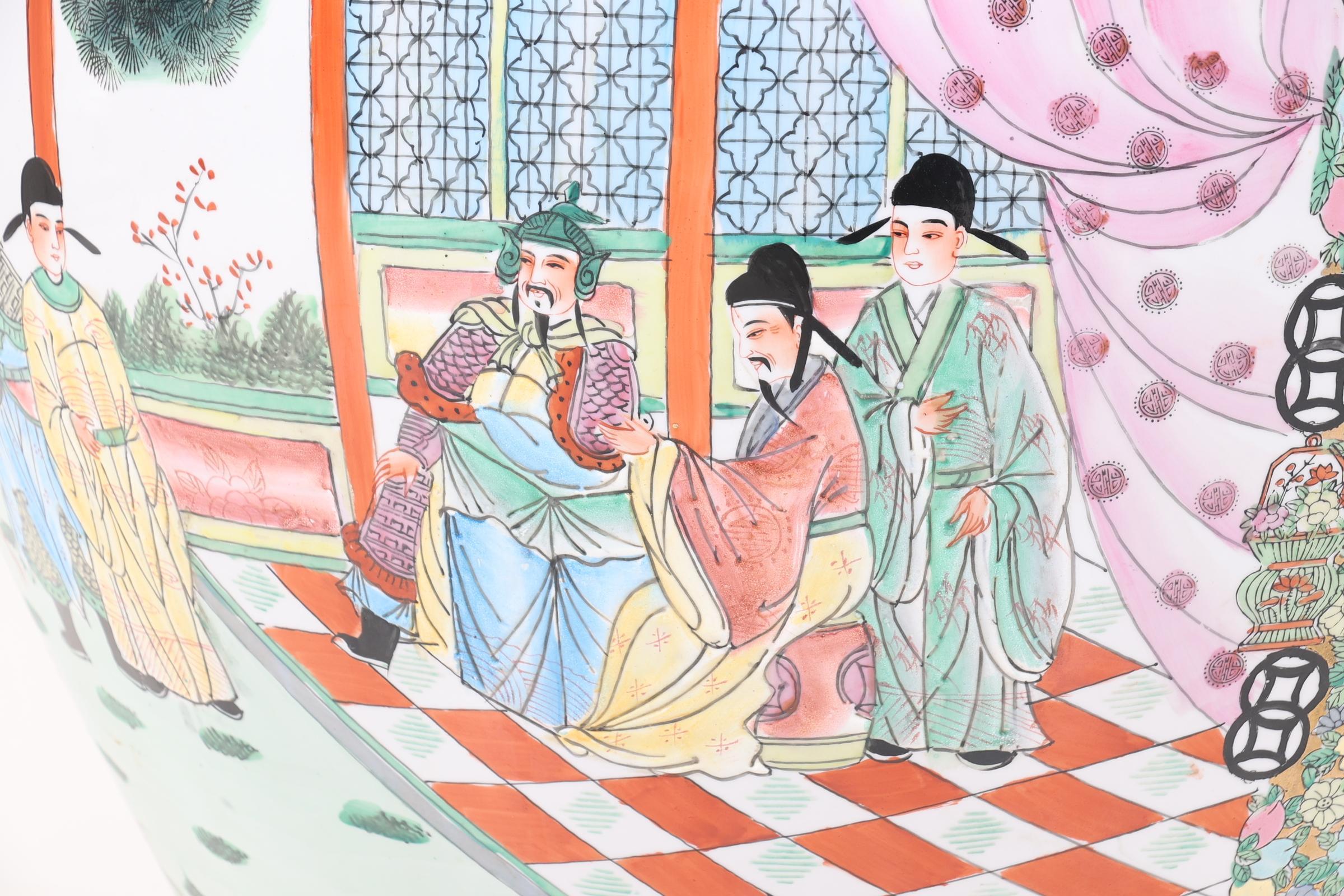Gepolychromeerde met bloemen en personen gedecoreerde Chinees porseleinen cachepot (Defect aan zijkant)