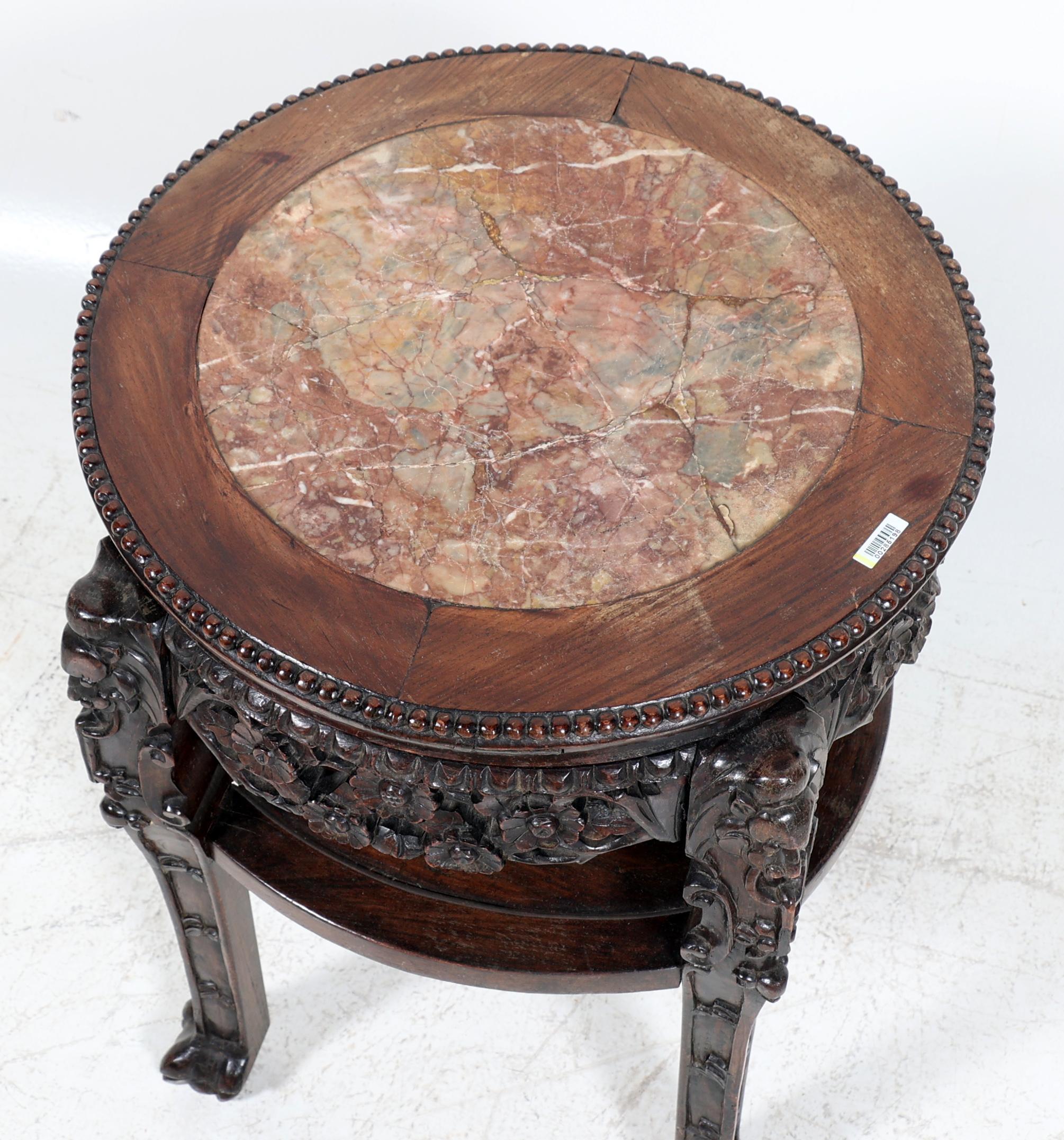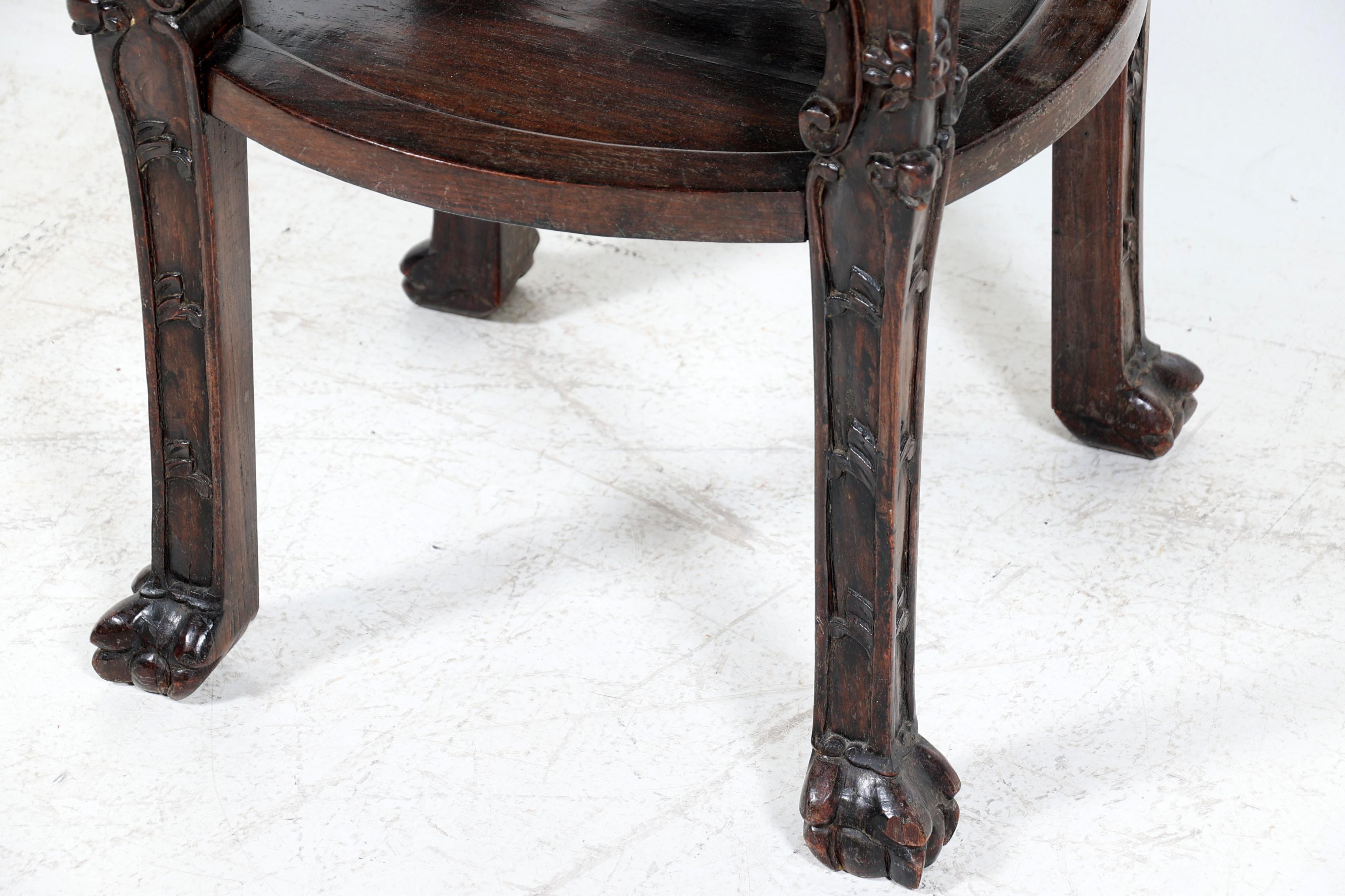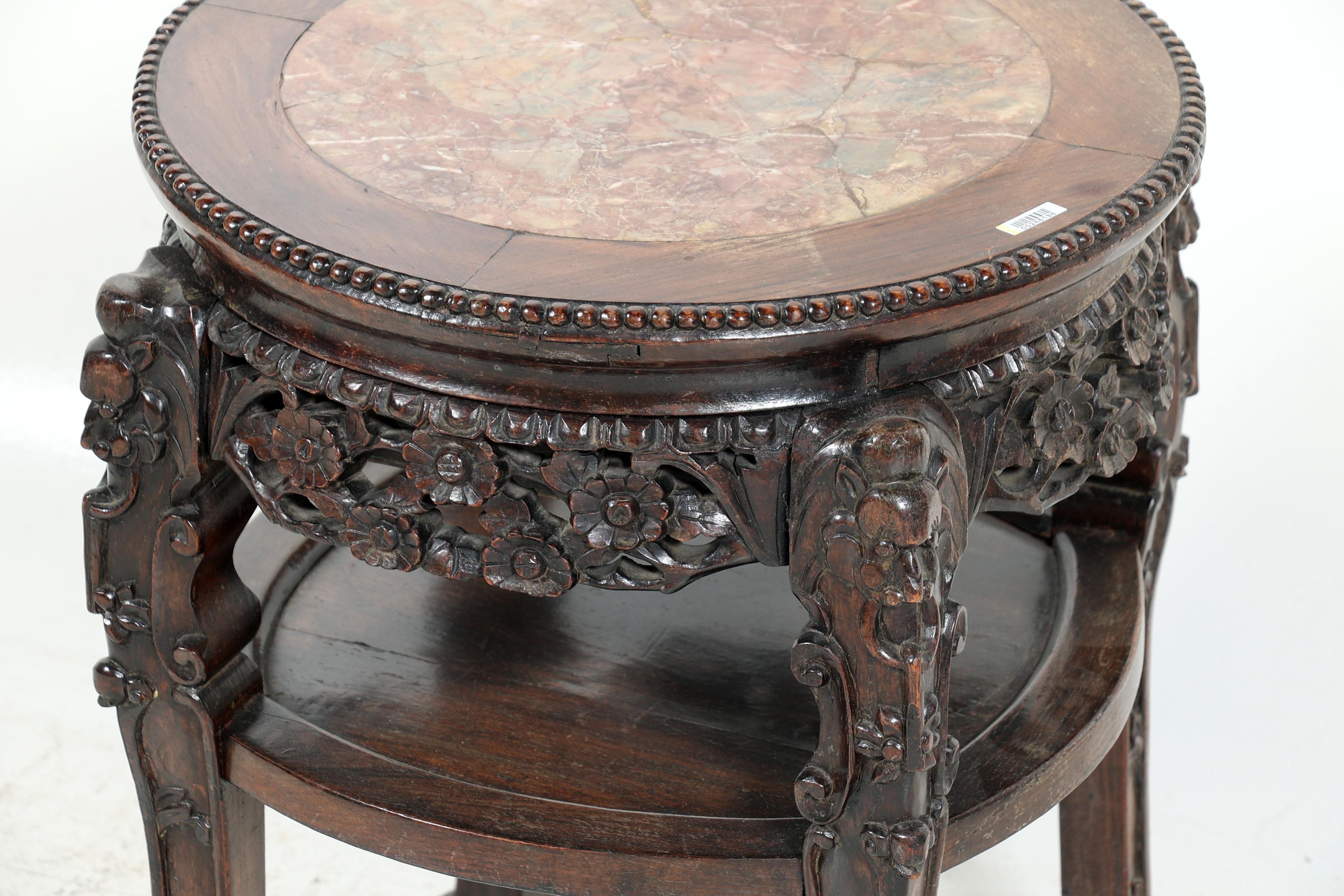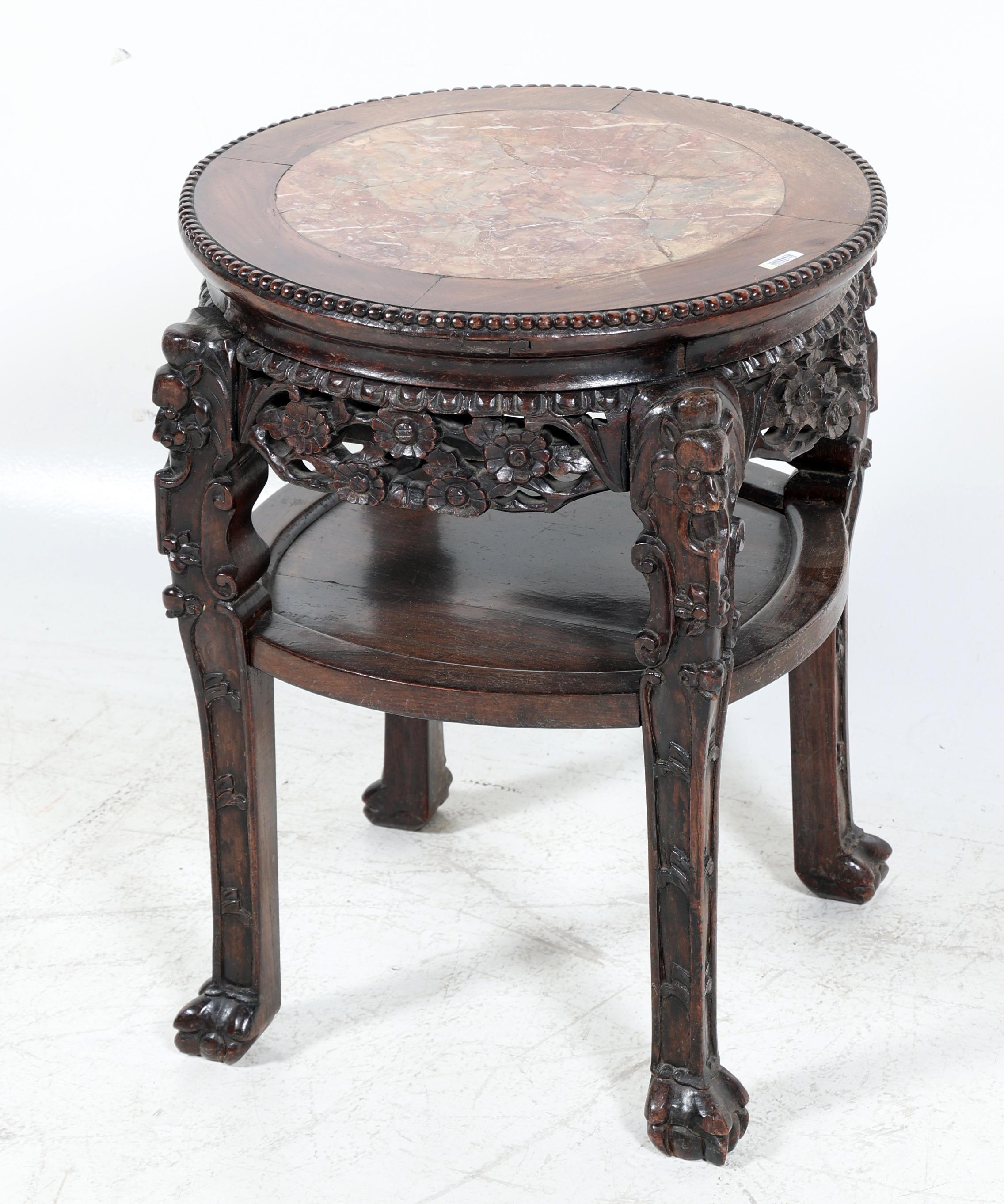 Antieke opengewerkte Chinese hokker met marmeren blad, h.57, diam. 45 cm.