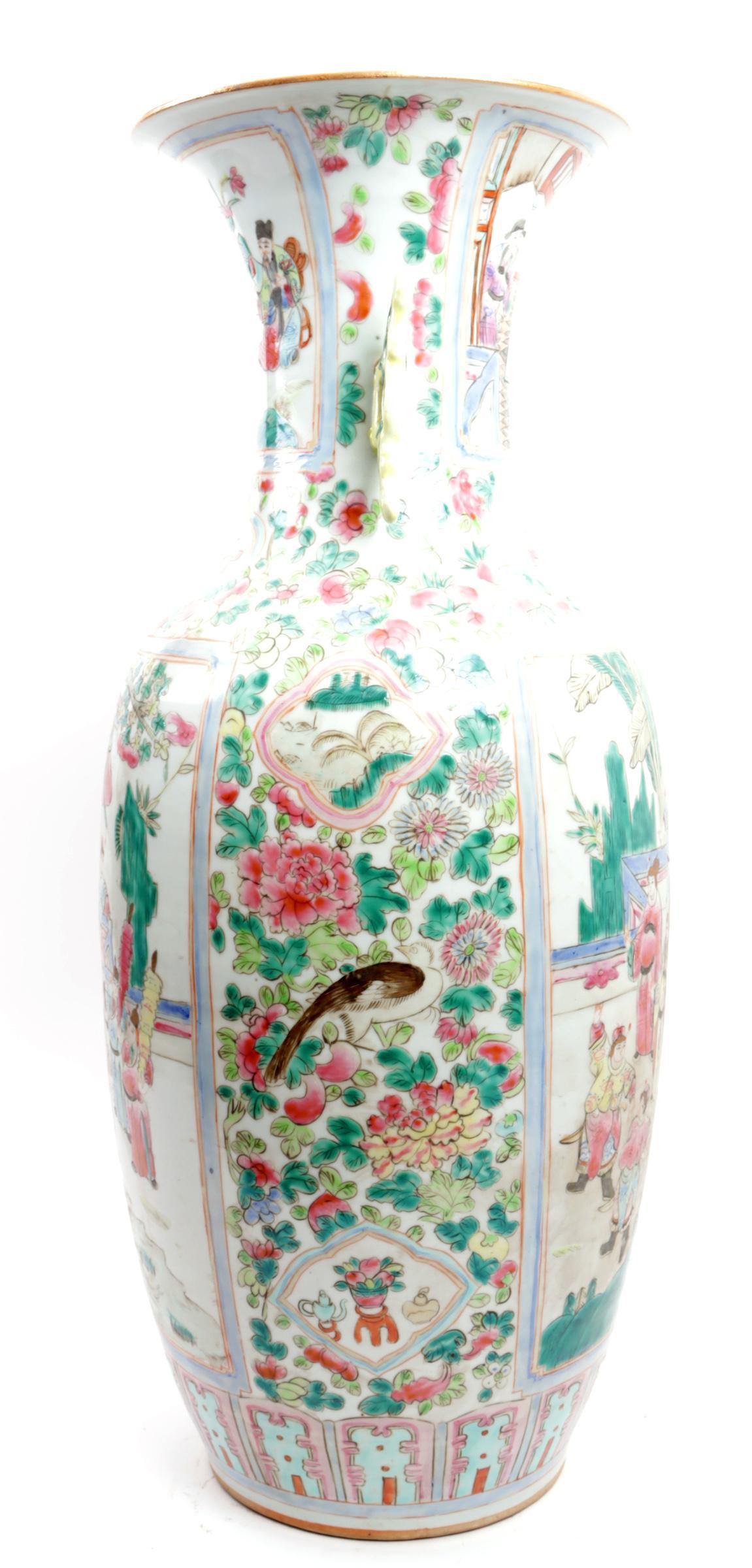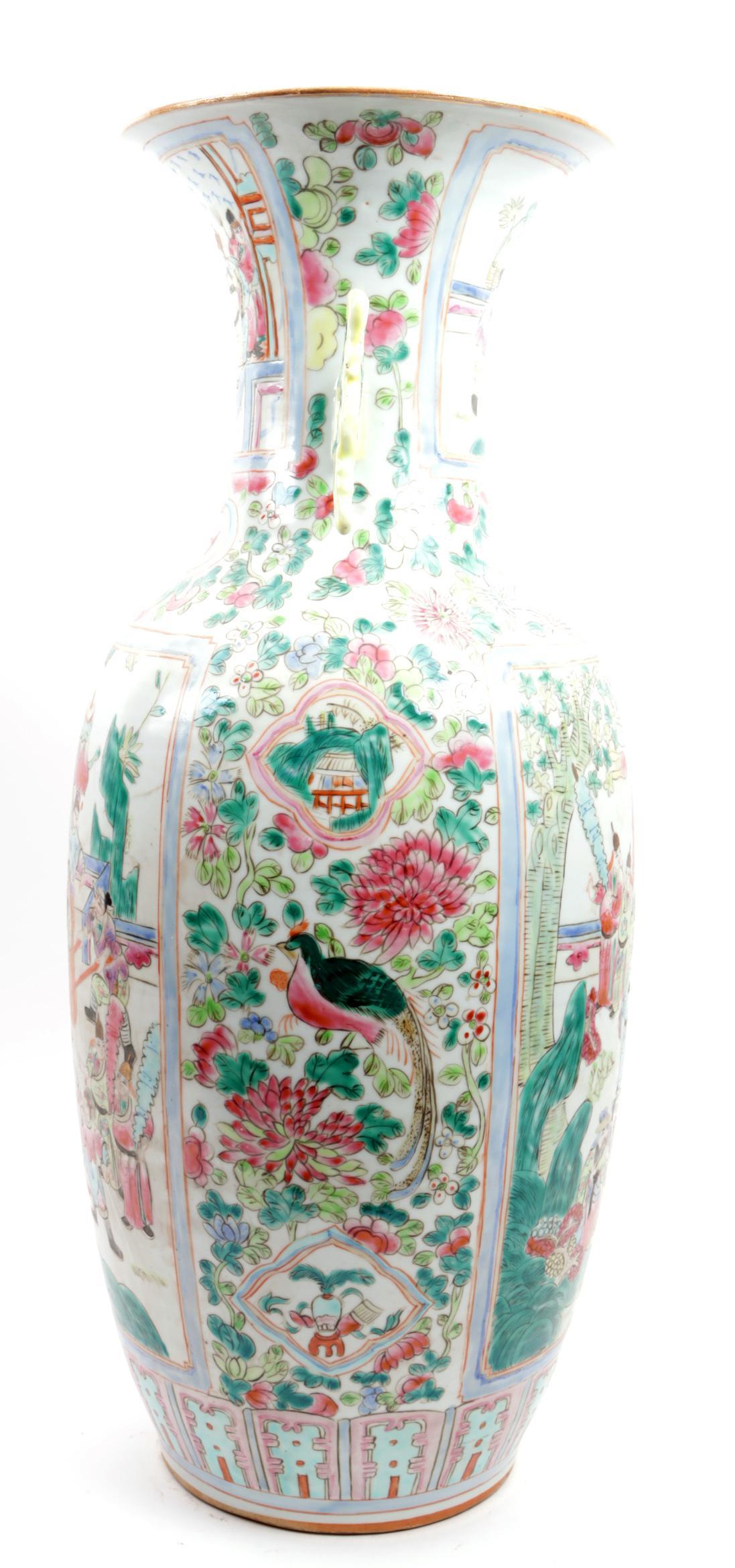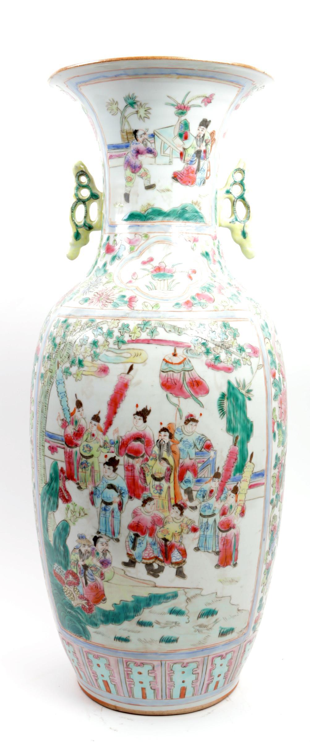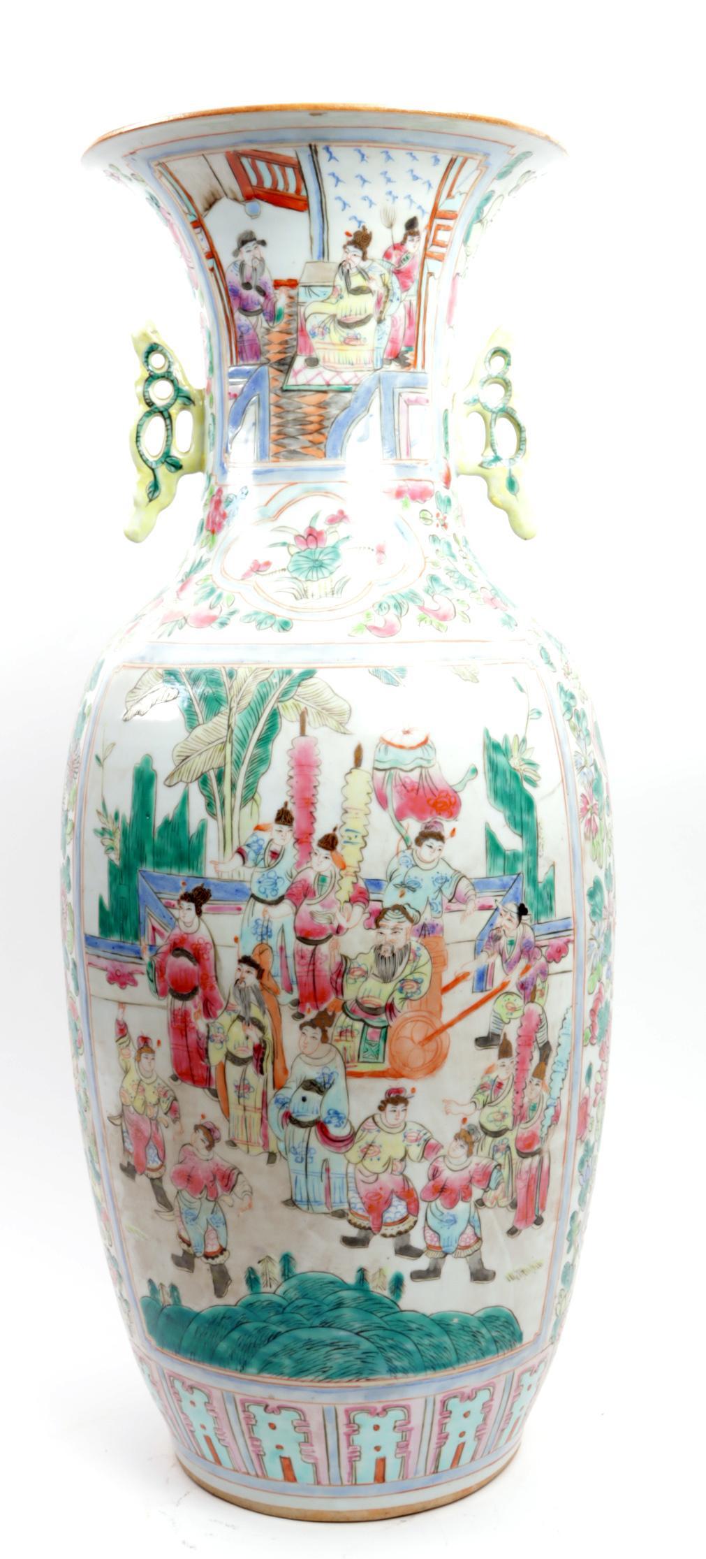 Gepolychromeerde met personen gedecoreerde Chinees porseleinen kraagvaas, h.57 cm.