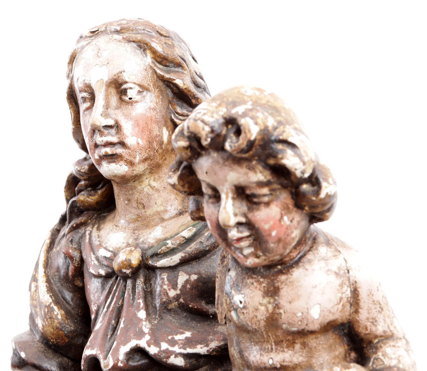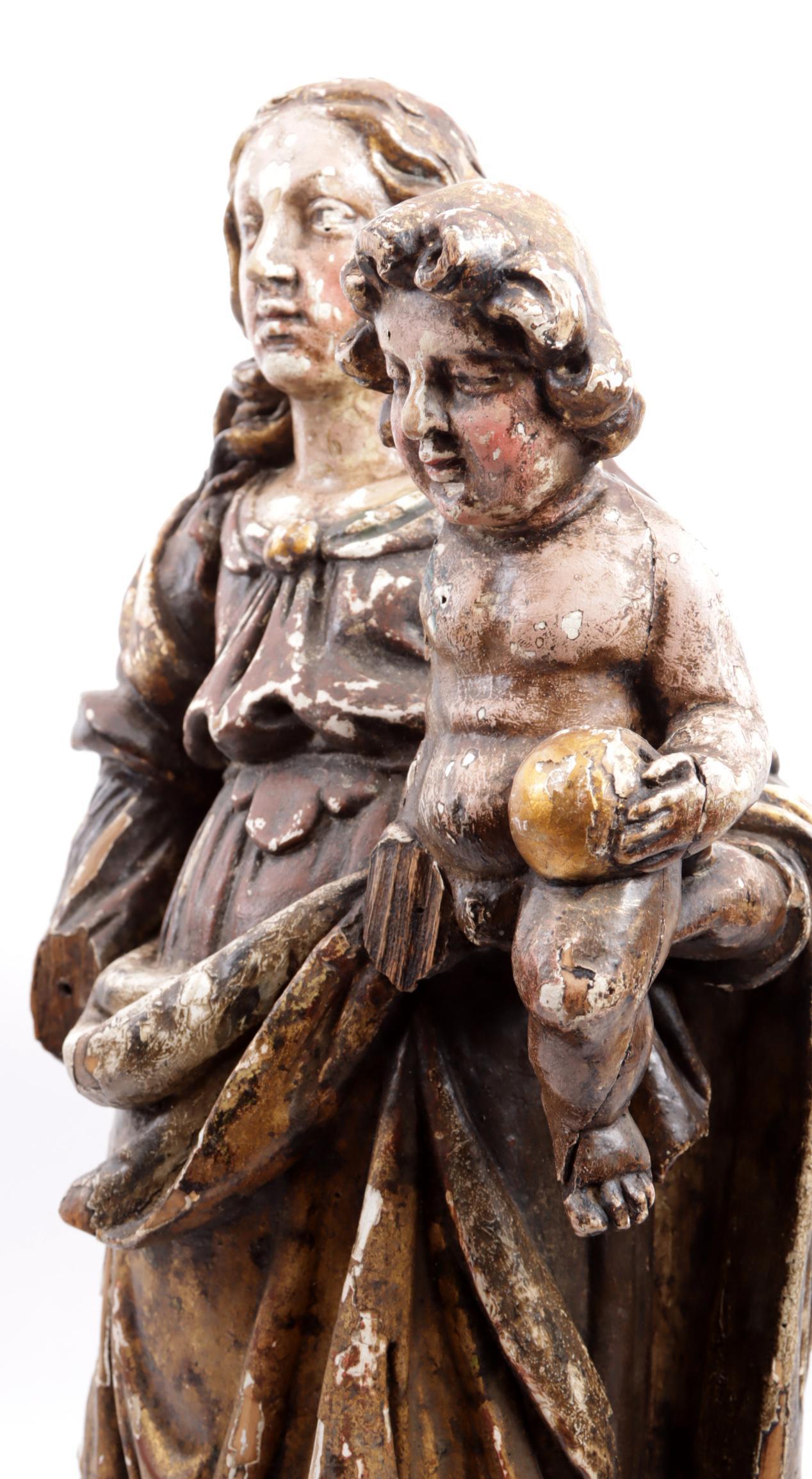 Gepolychromeerd houten beeld van Maria met kind, h.60 cm.