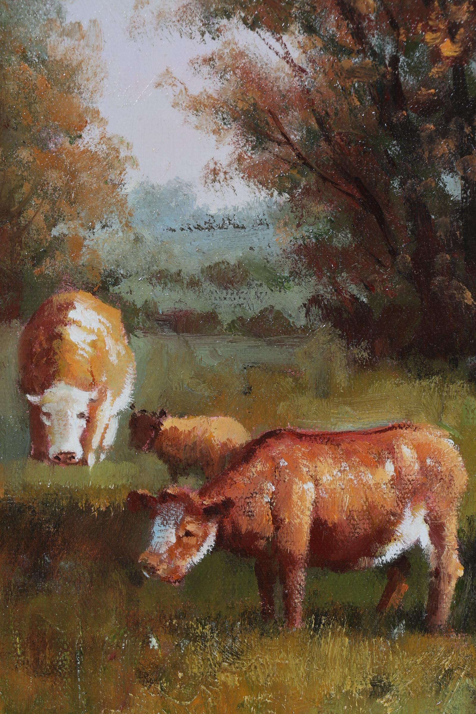 Van Han, Landschap met vee, olieverf op doek, 80 x 60 cm.
