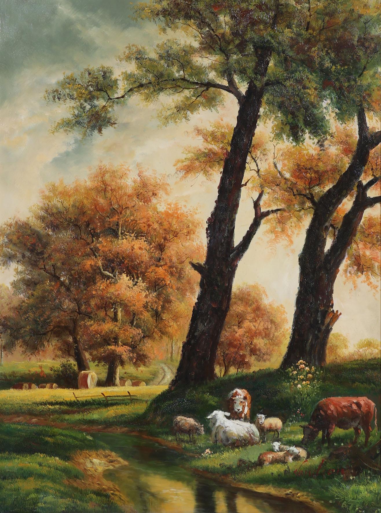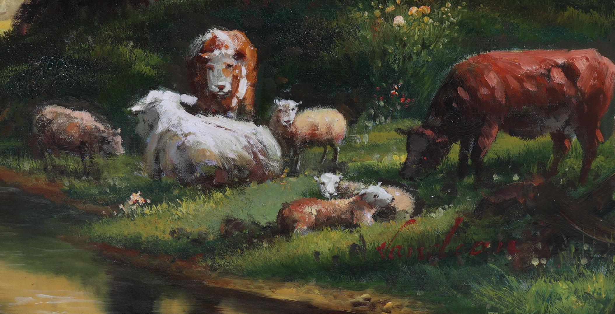 van Han, Landschap met vee, olieverf op doek, 80 x 60 cm.