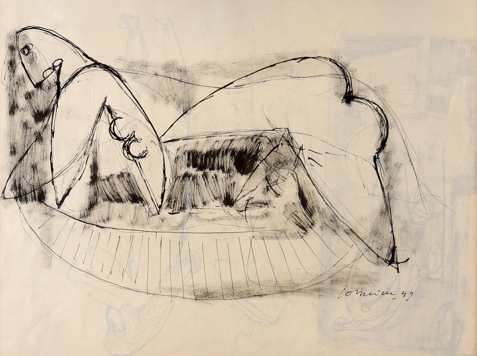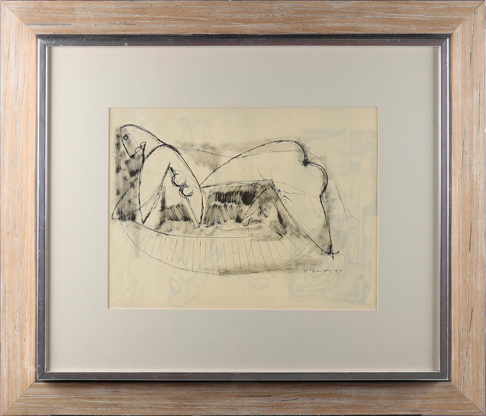 'Corneille', alias van Cornelis Guillaume van Beverloo (1922- 2010), Naakt (1947), inkt op papier, gesigneerd en gedateerd en met een inkttekening op de achterzijde, 32 x 42 cm. Provenance: collectie Kunsthandel Elisabeth den Bieman de Haas, Amsterdam