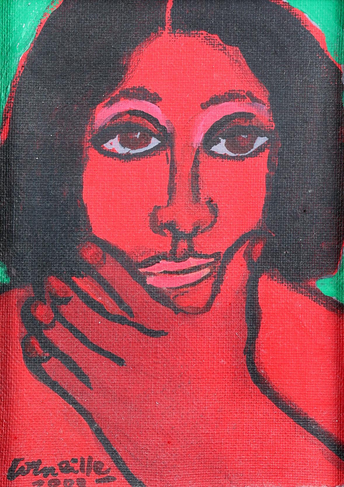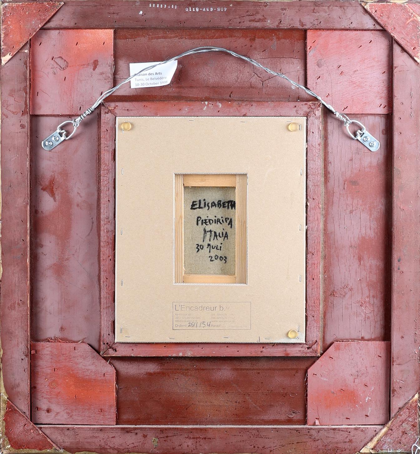 'Corneille', alias van Cornelis Guillaume van Beverloo (1922- 2010), Elisabeth (2003), acryl op doek, gesigneerd en gedateerd linksonder 'Corneille 2003' en op achterzijde: Piediripa Italia, 30 juli 2003, 18,5 x 13 cm. Provenance: collectie kunsthandel Elisabeth den Bieman de Haas, Amsterdam. Tentoonstelling: Maison des Arts, Tunis, Le Belvédère 10-30 oktober 1998