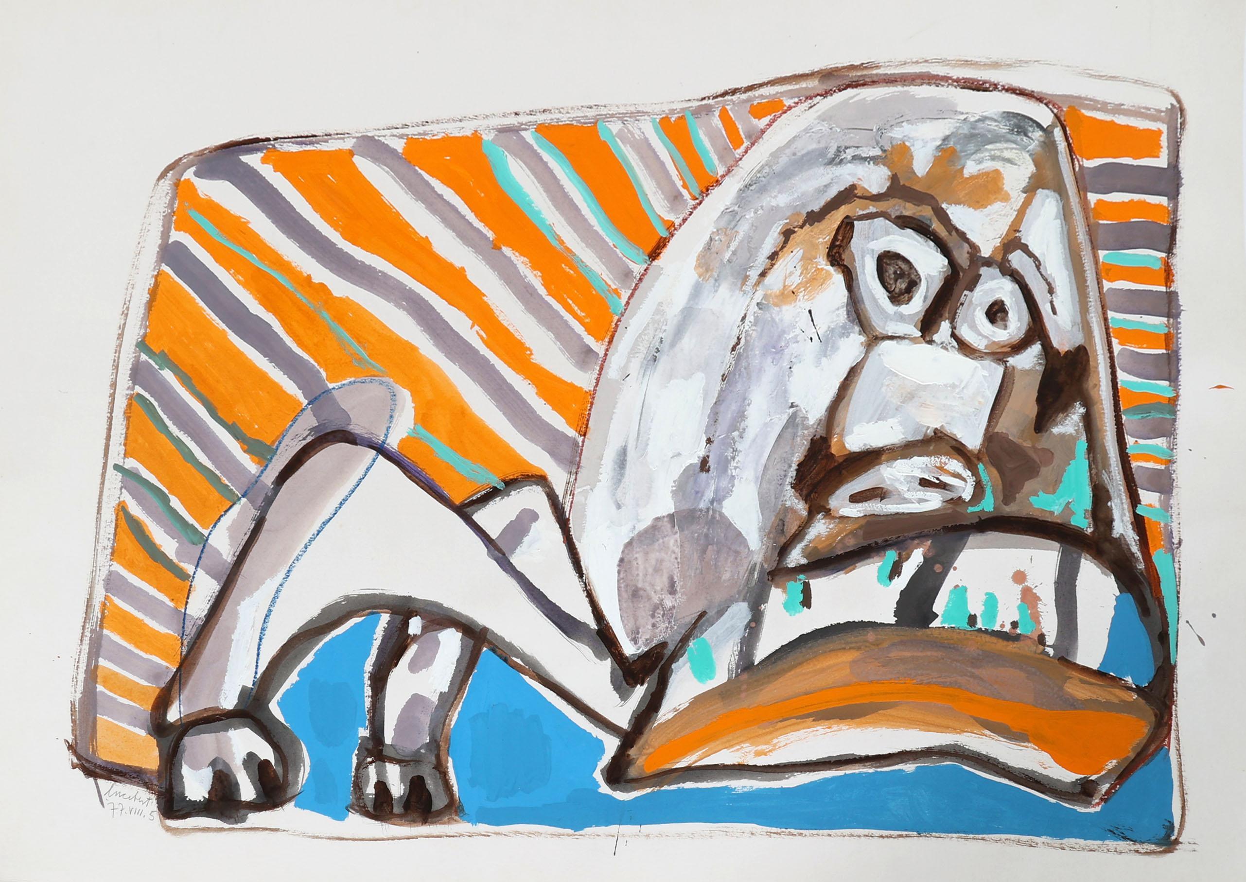 'Lucebert' alias van Lubertus Jacobus Swaanswijk (1924-1994), Waakhond II, gouache op papier, gesigneerd en genummerd 77.VIII.5, 70 x 100,5 cm.
