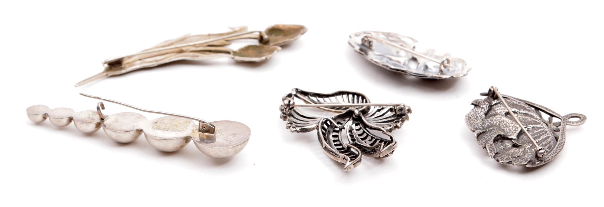 5 Antieke zilveren broches, ca.70 gram