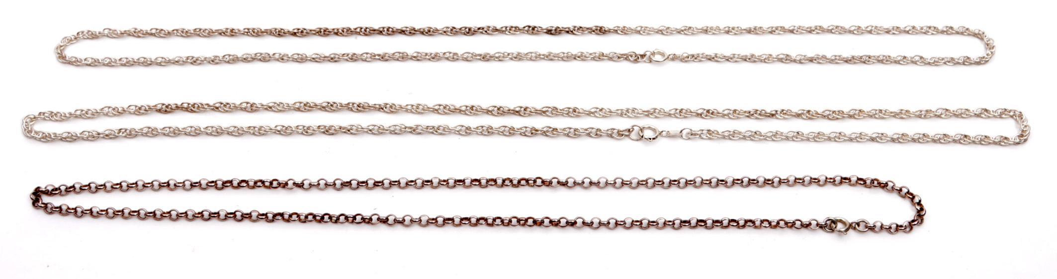 3 Diverse zilveren colliers, L.70 en 60 cm., 48 gram