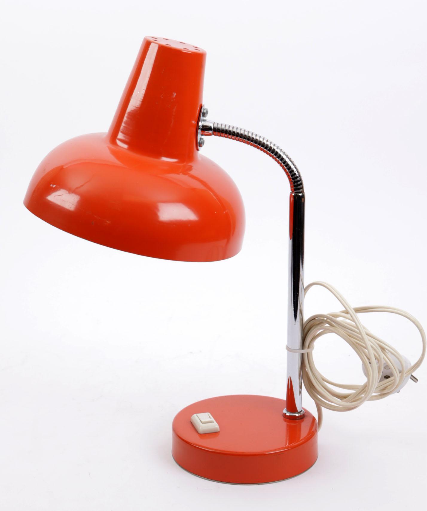 Oranje vintage bureaulamp, h.37 cm.