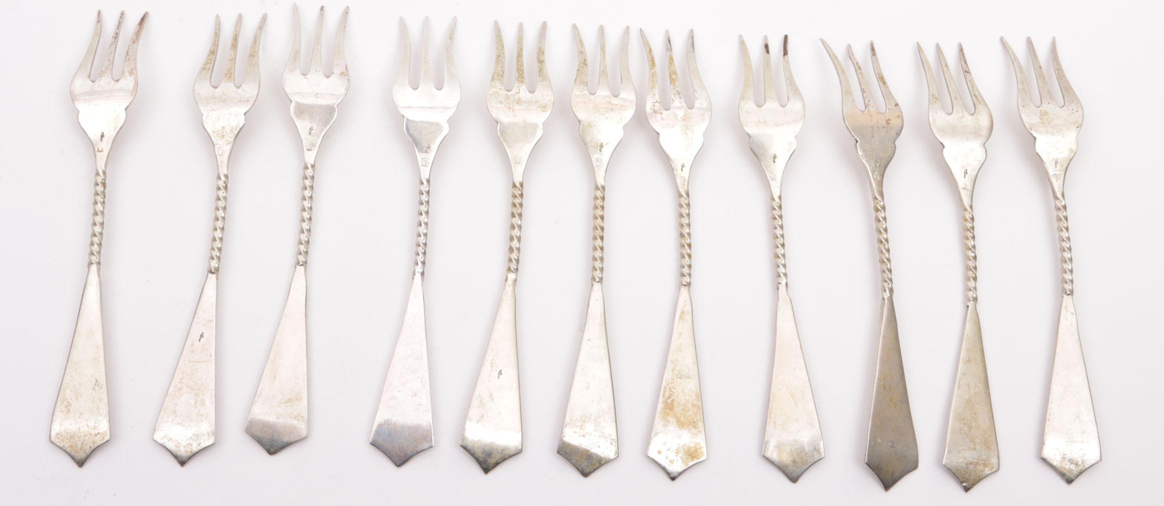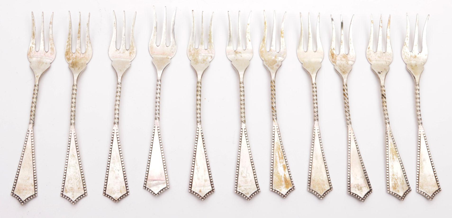Set van elf 2e gehalte zilveren vorkjes, totaalgewicht 87 gram