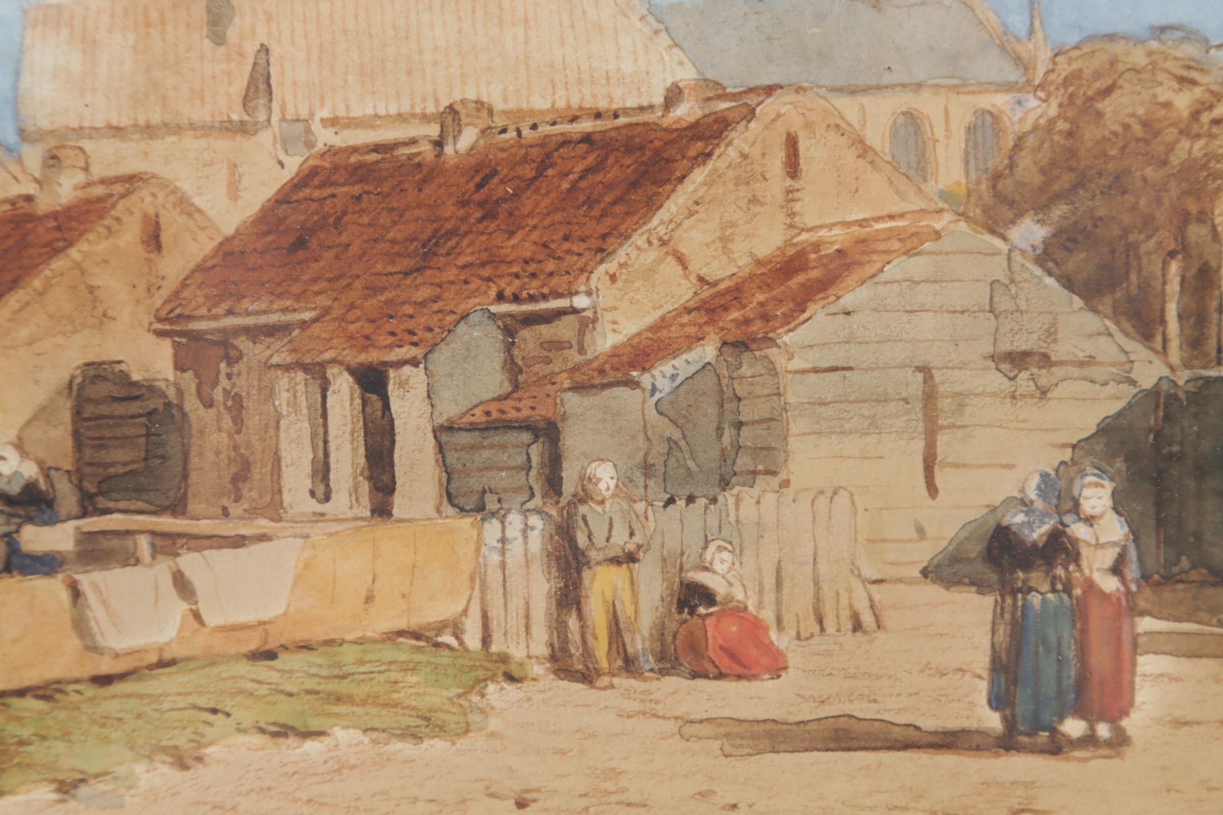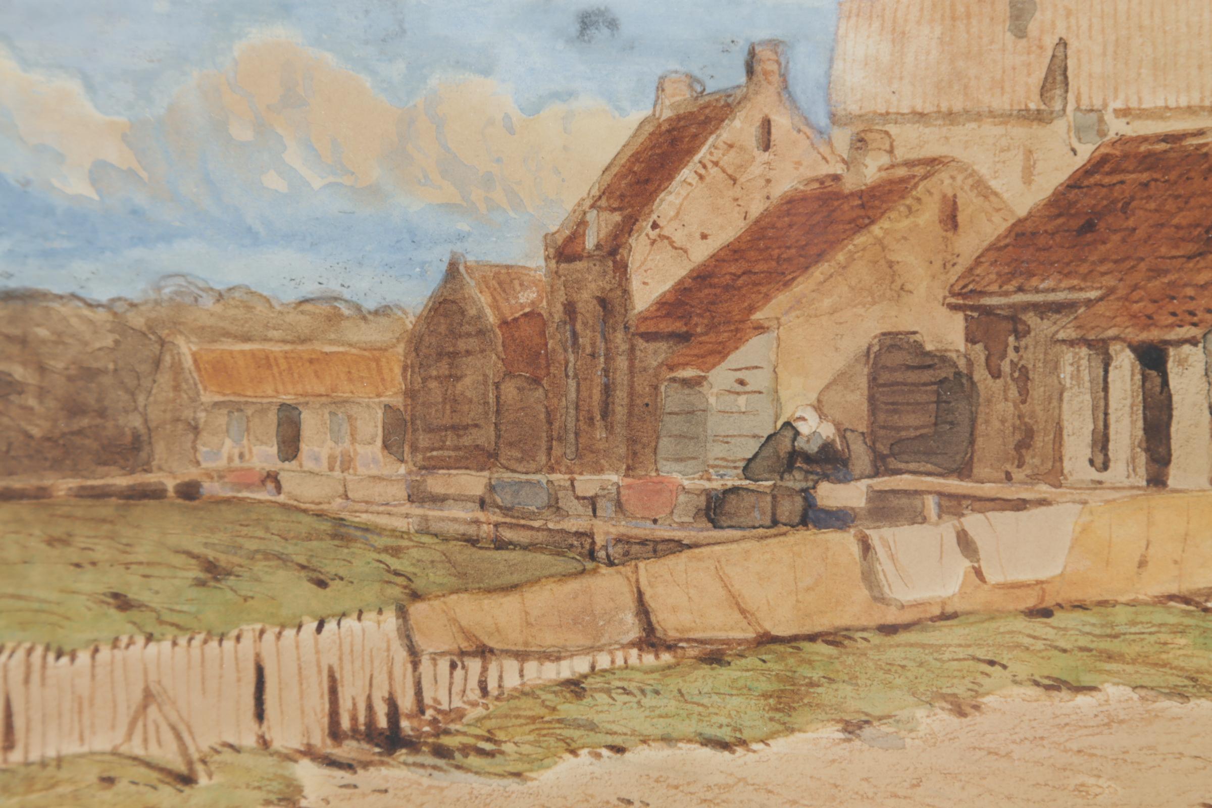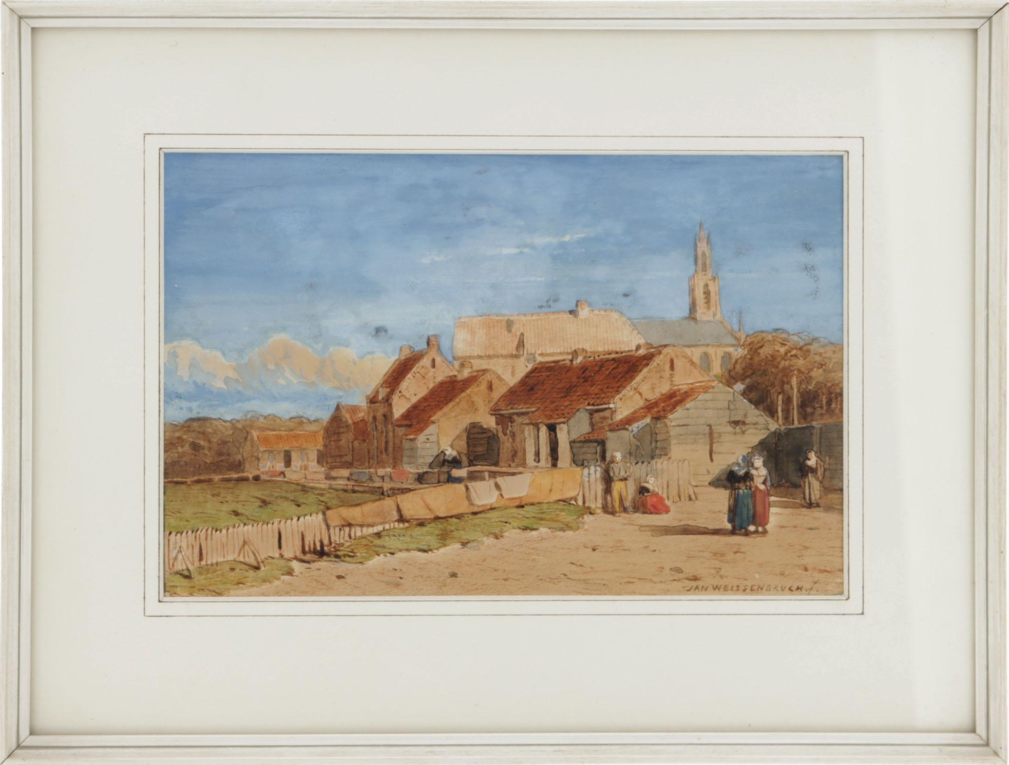 Jan Weissenbruch (1824-1880), Wasdag bij het dorp, aquarel, 23 x 15 cm., provenacne particuliere collectie, note : vermeld in oeurvre boek over Jan Weissenbruch door Willem Laanstra