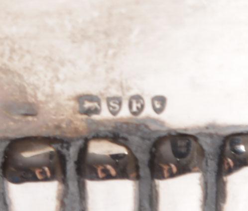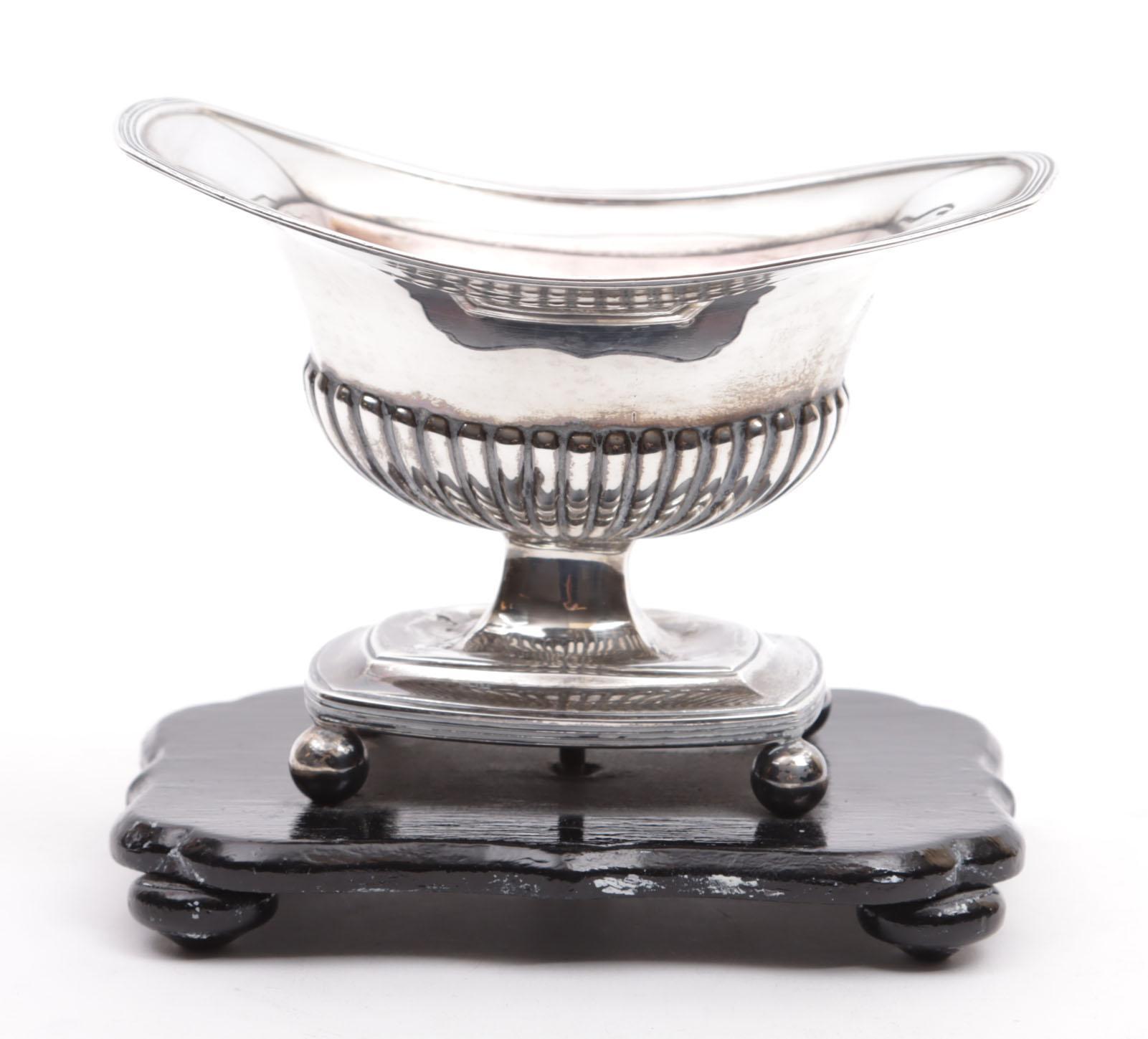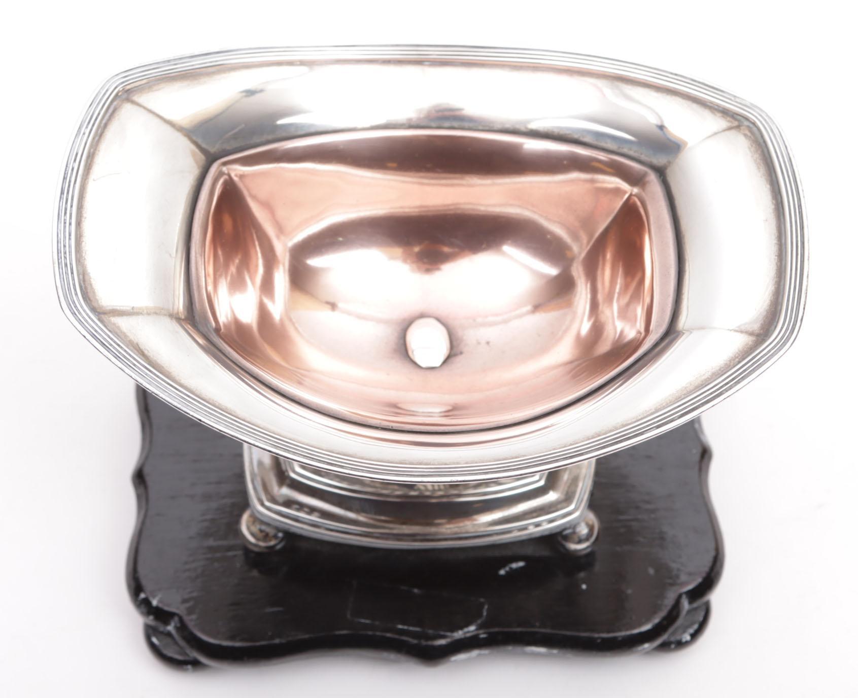 Gebombeerd rechthoekig 1e gehalte zilveren rechthoekig pijpenkomfoor rustend op houten voetstuk, J.A. de Haas sr., 1821, importkeur Londen, jaarletter 1893, zilvergewicht 215 gram