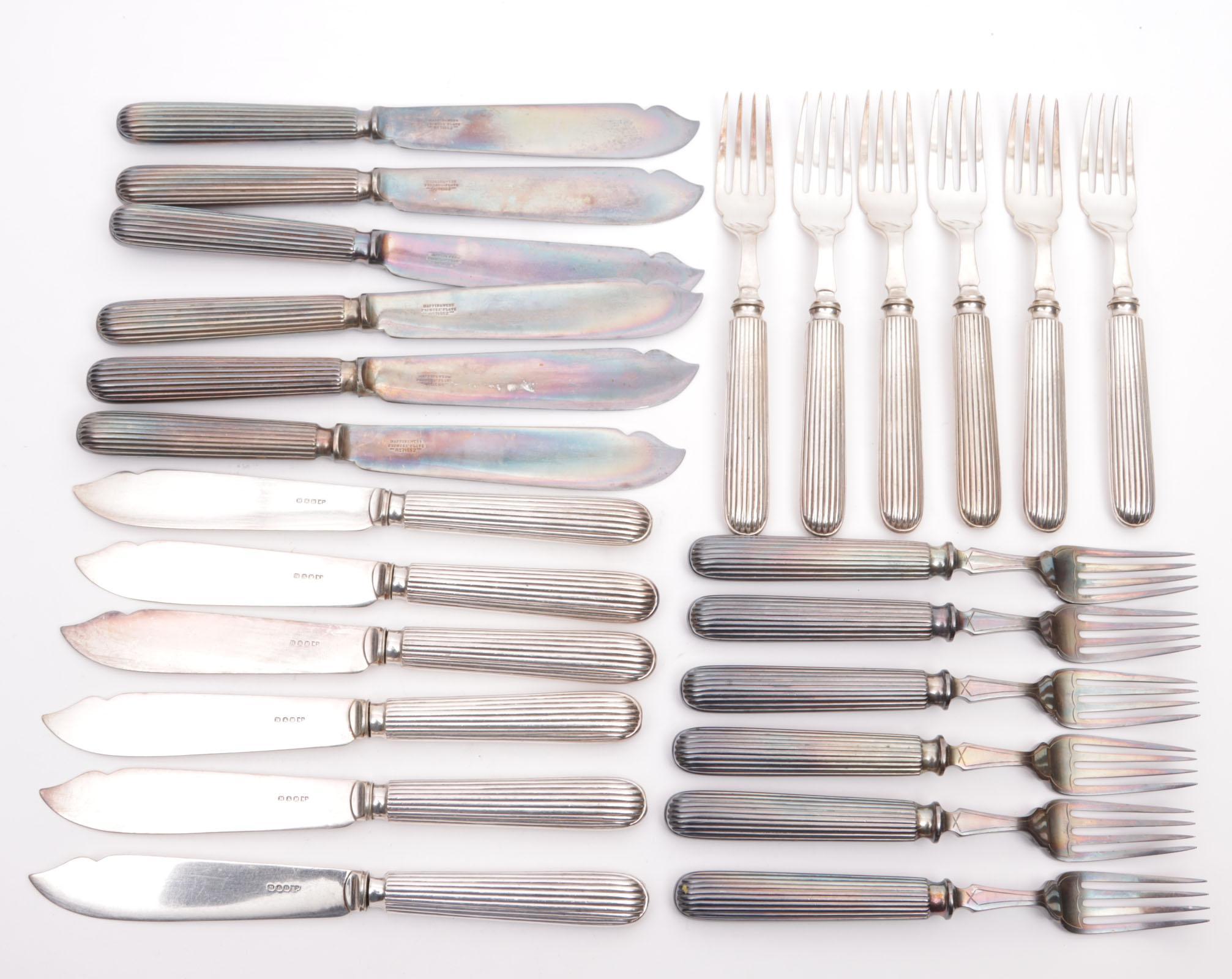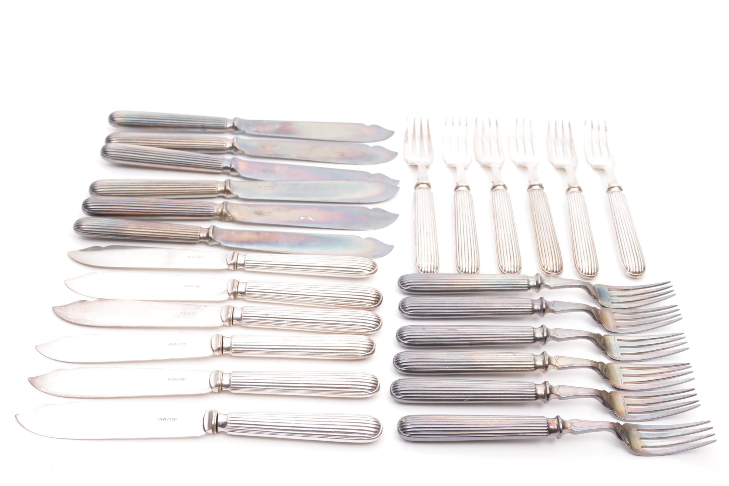 Twee sets van 6-persoons visbestek met geribbelde handvatten