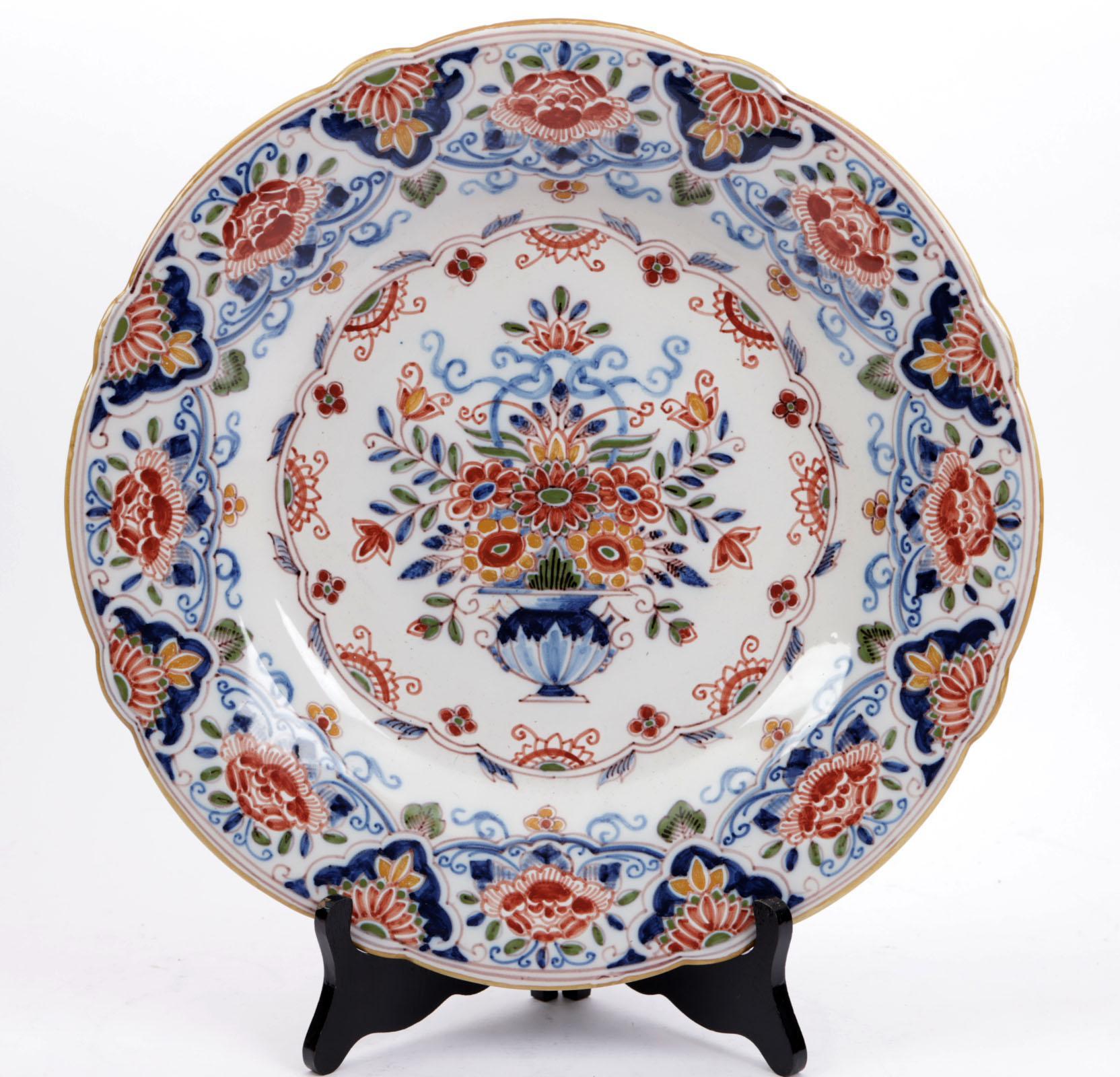 Makkum aardewerken schotel met florale motieven, diam.36 cm.