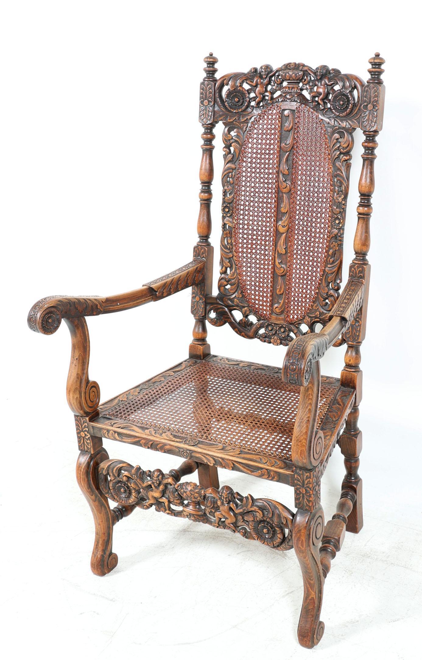 Eikenhouten stoel met webbing zitting en rugleuning