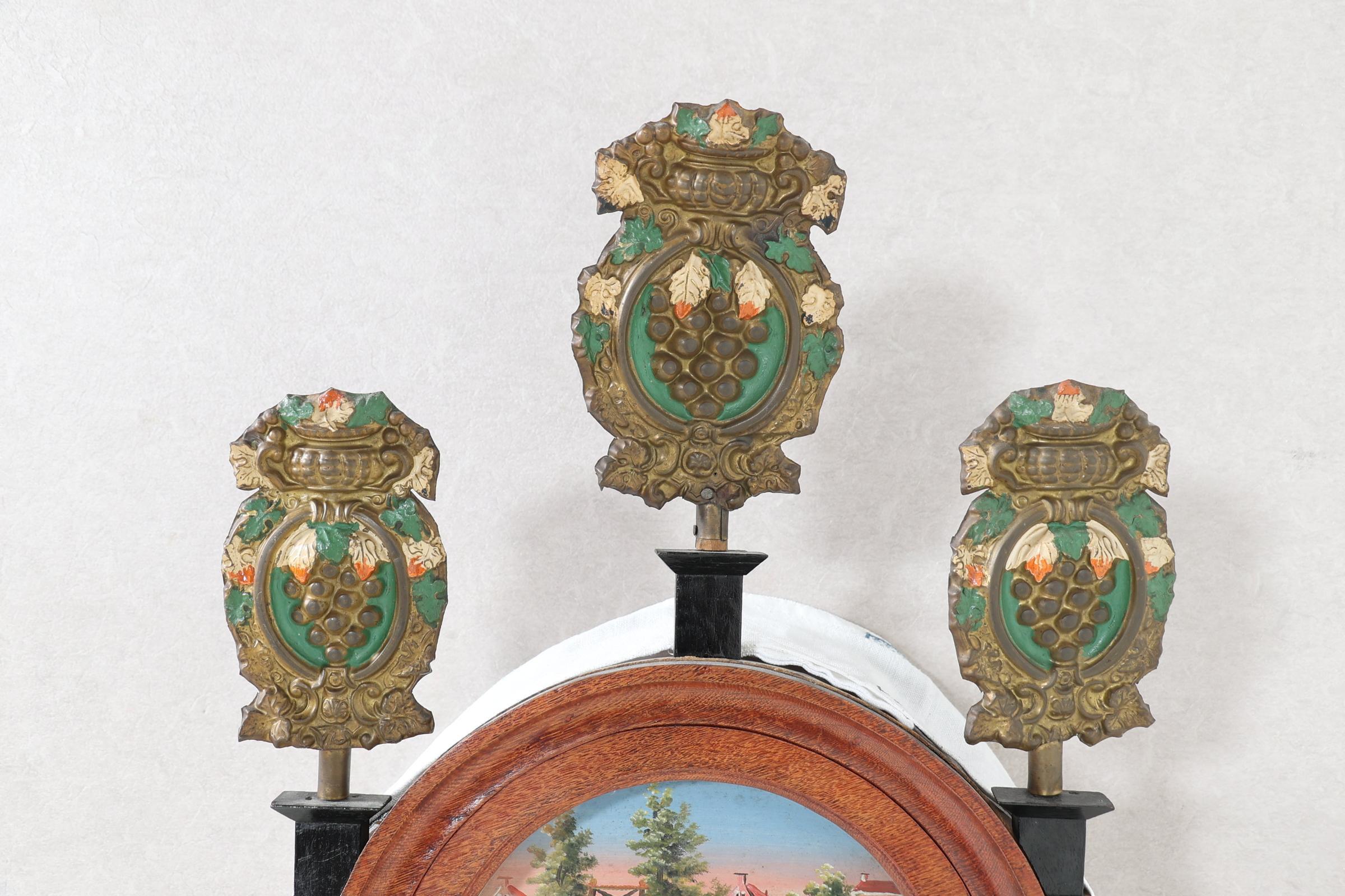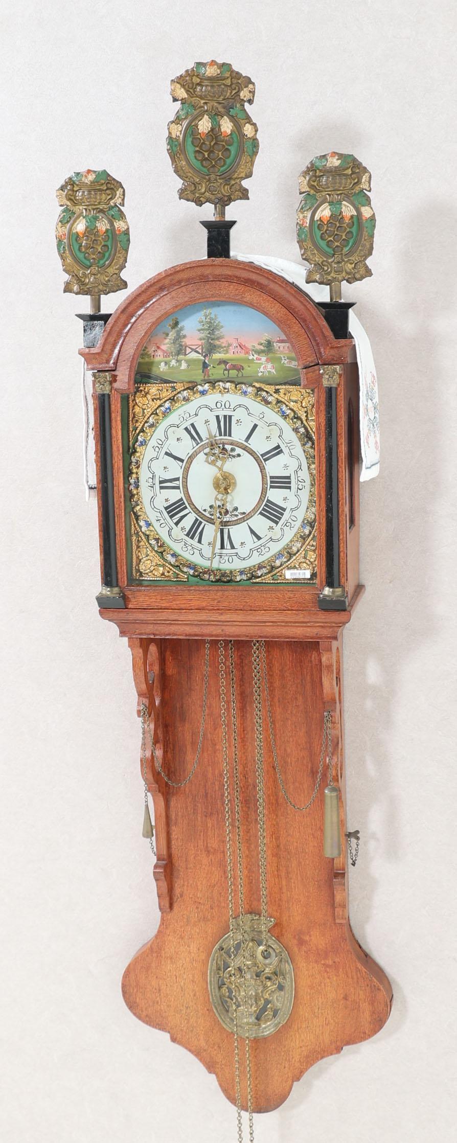 Antieker Friese staartklok met bruidskrans in eikenhouten kast