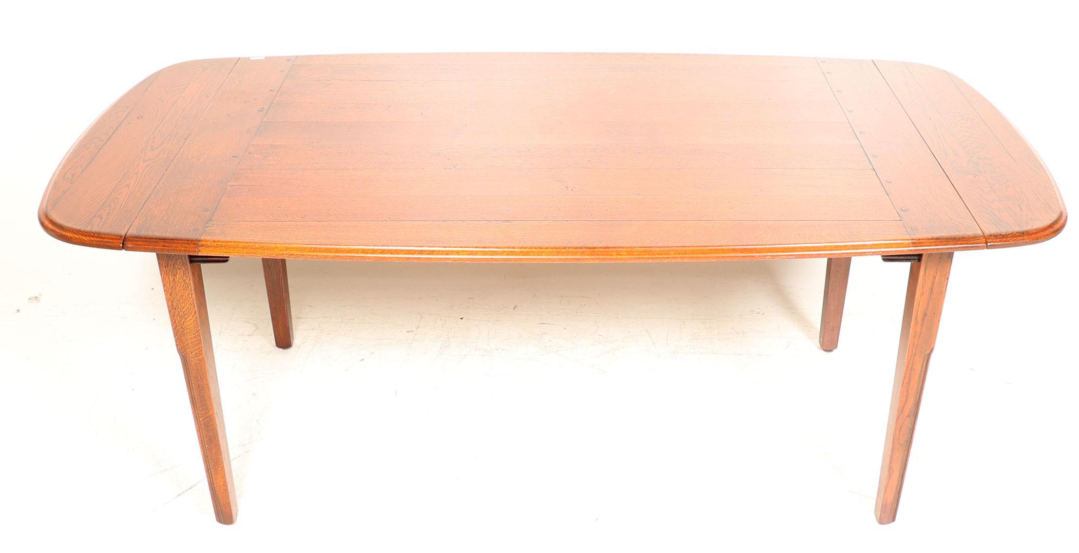 Eikenhouten eetkamertafel met opklapbare zijkanten, h.78 x b.150 x d.95 cm.