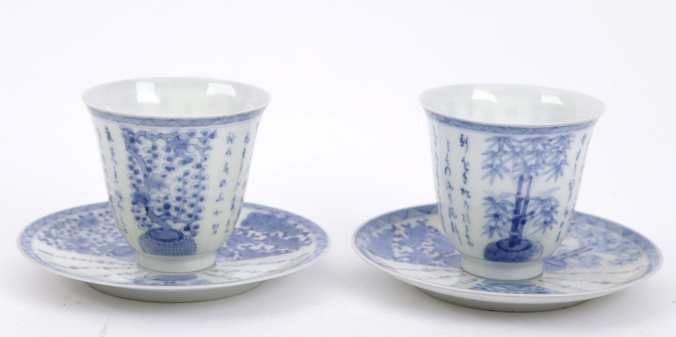 2 Blauw/wit gedecoreerde Japans porseleinen kom en schotels
