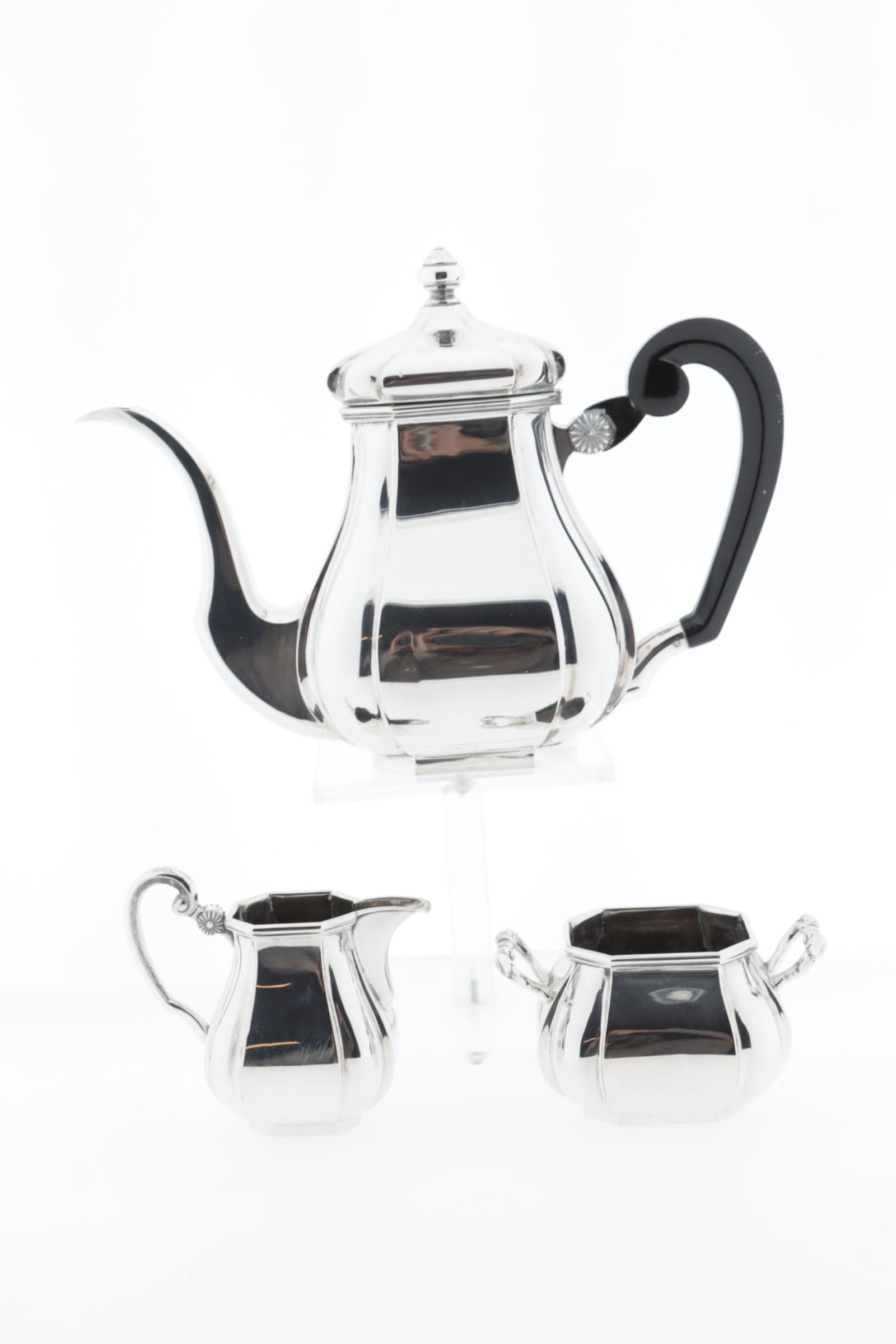 2e Gehalte zilveren 3-delig koffieservies, Aubert, 1953, 736 gram