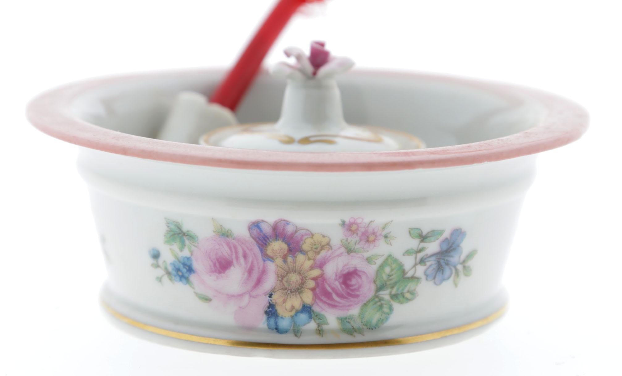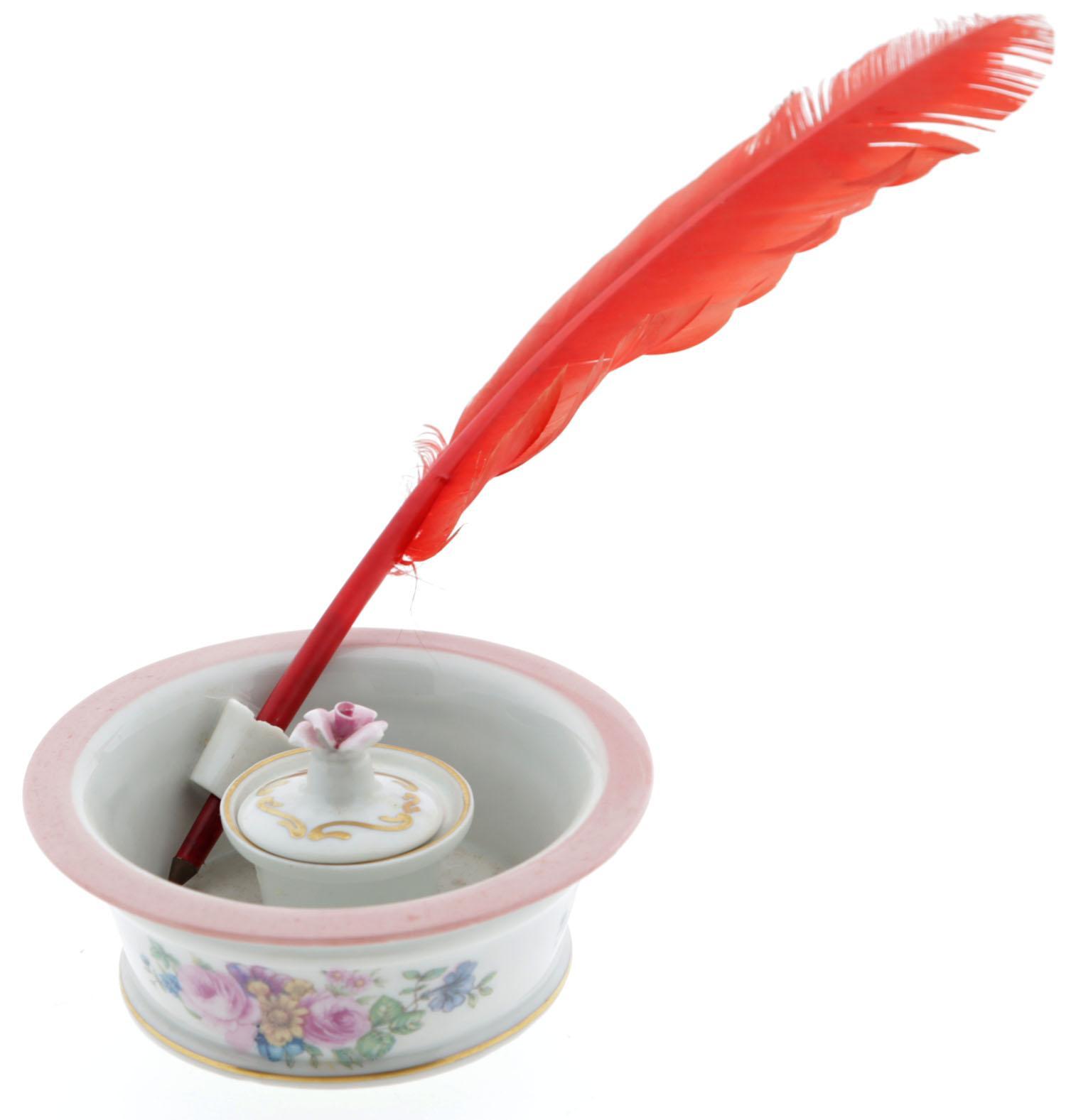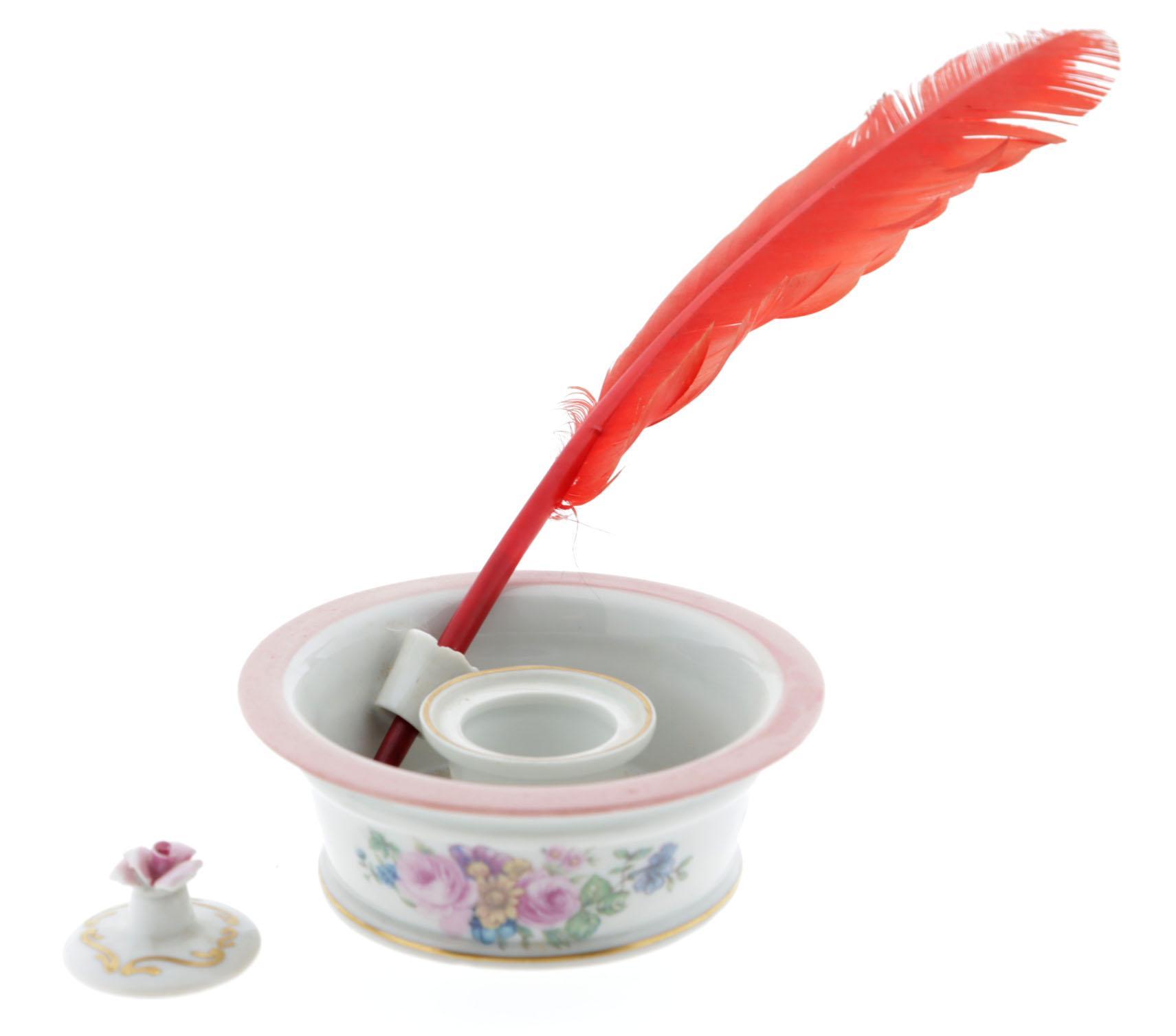 Antiek met rozen gedecoreerd porseleinen inktstel
