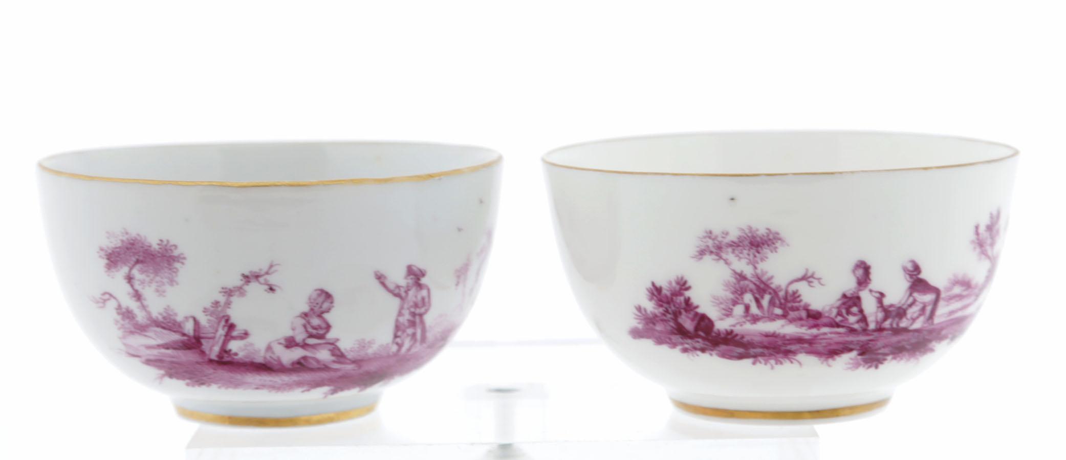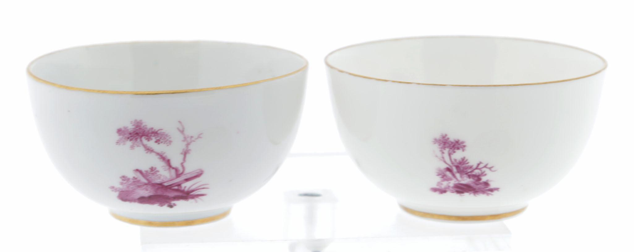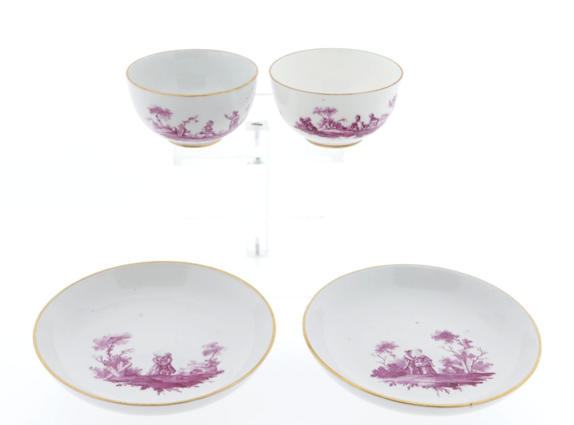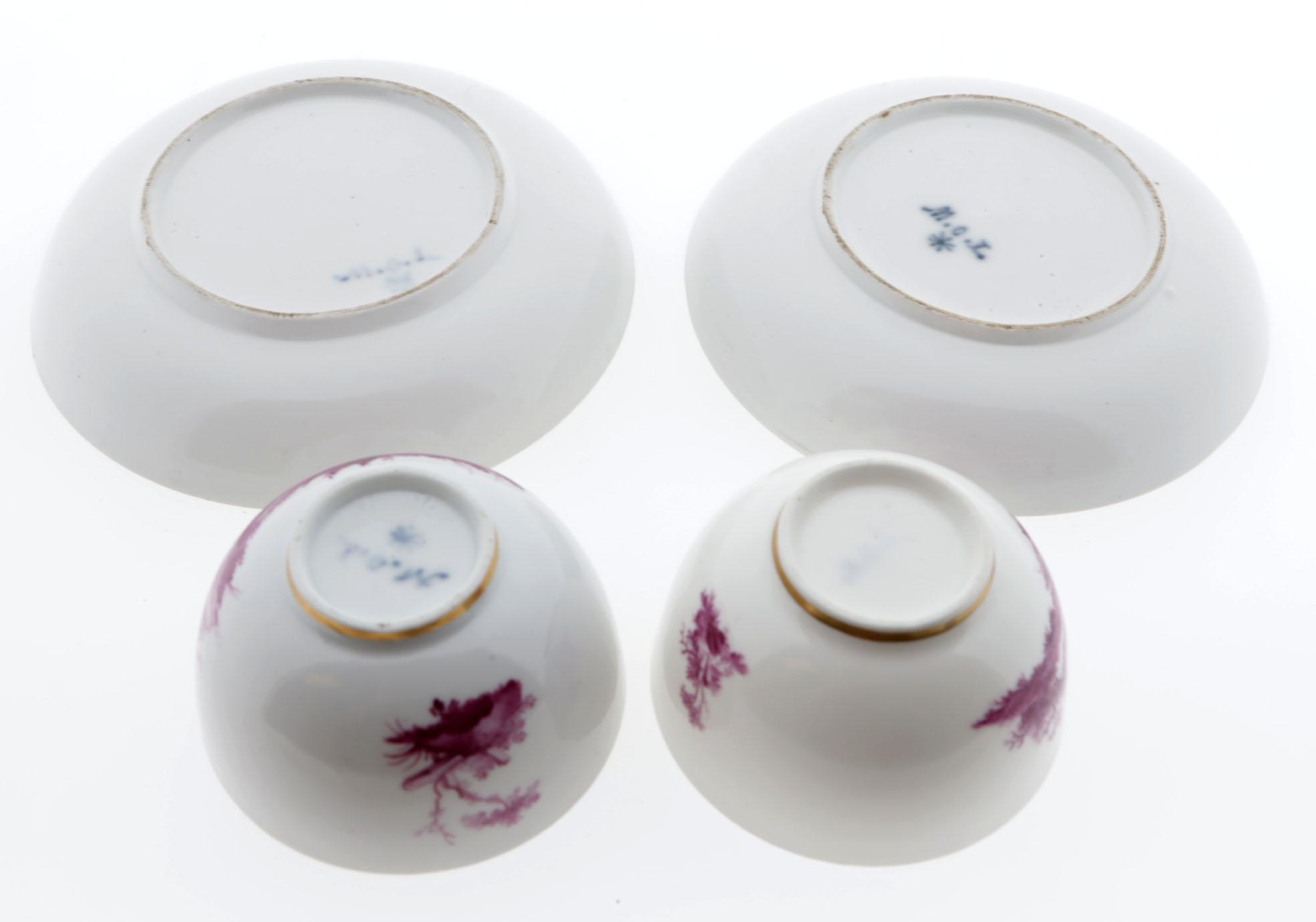 2 Bietenrood porseleinen kop en schotels, Loosdrechts (MOL)porselein