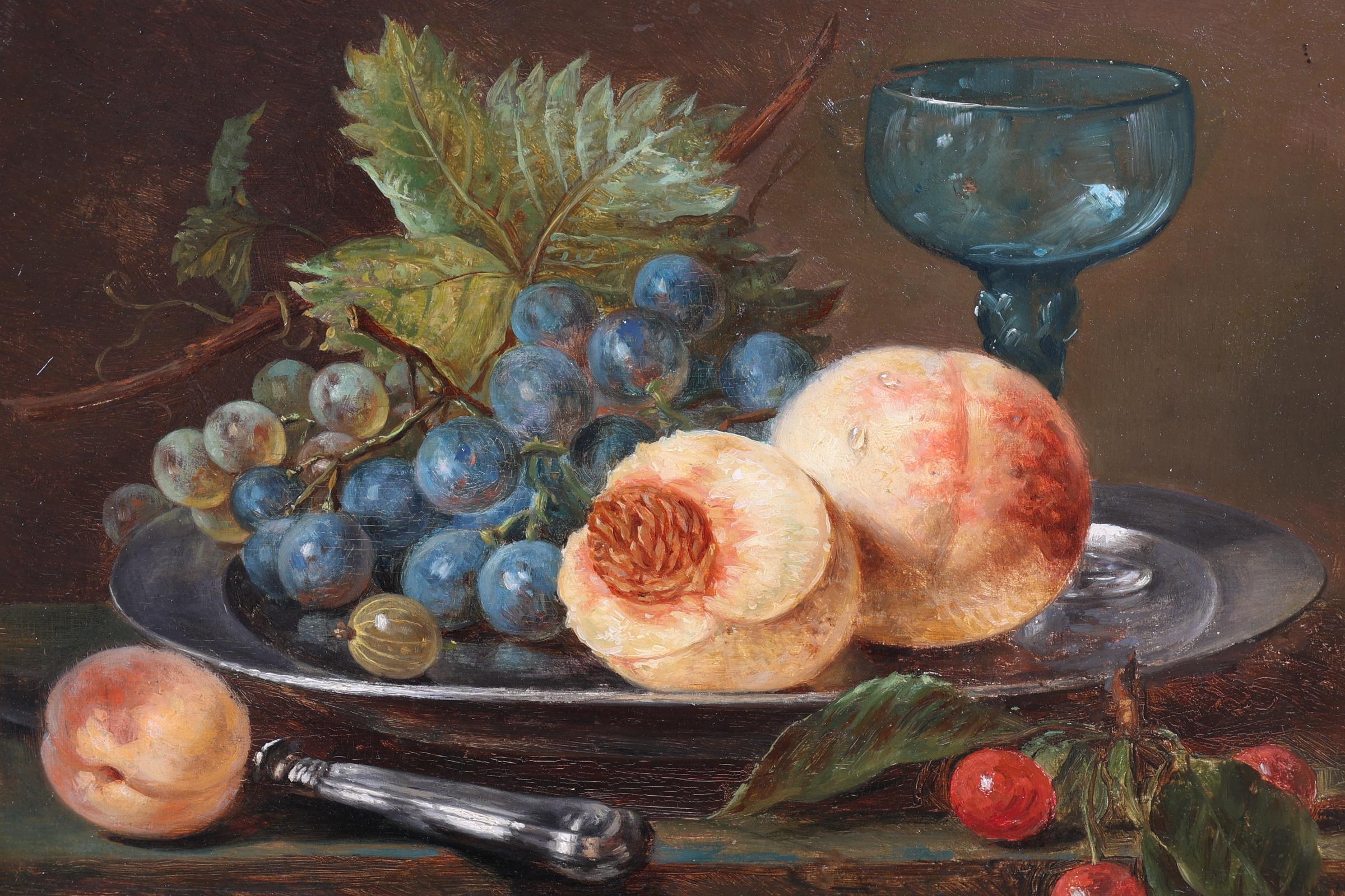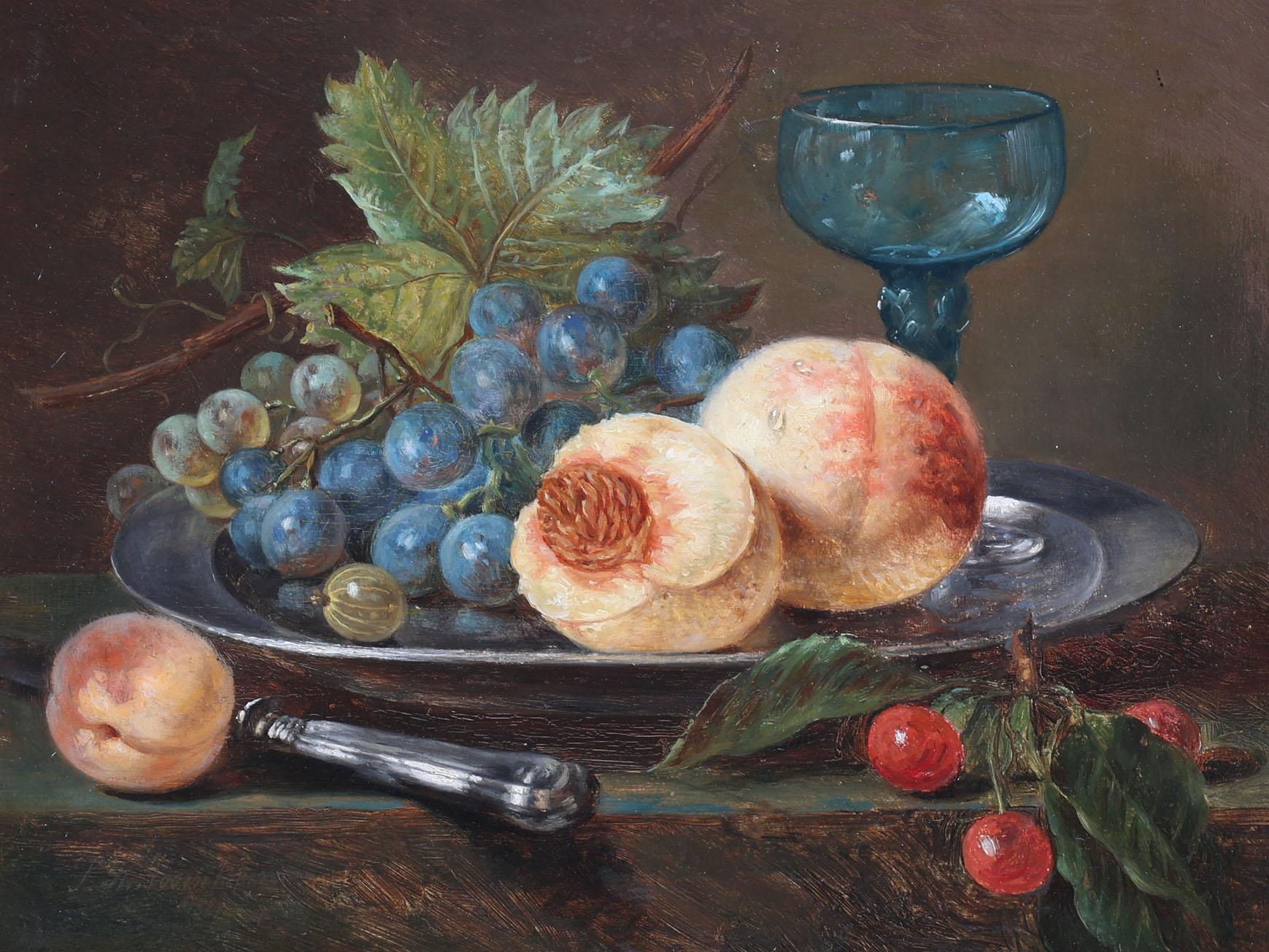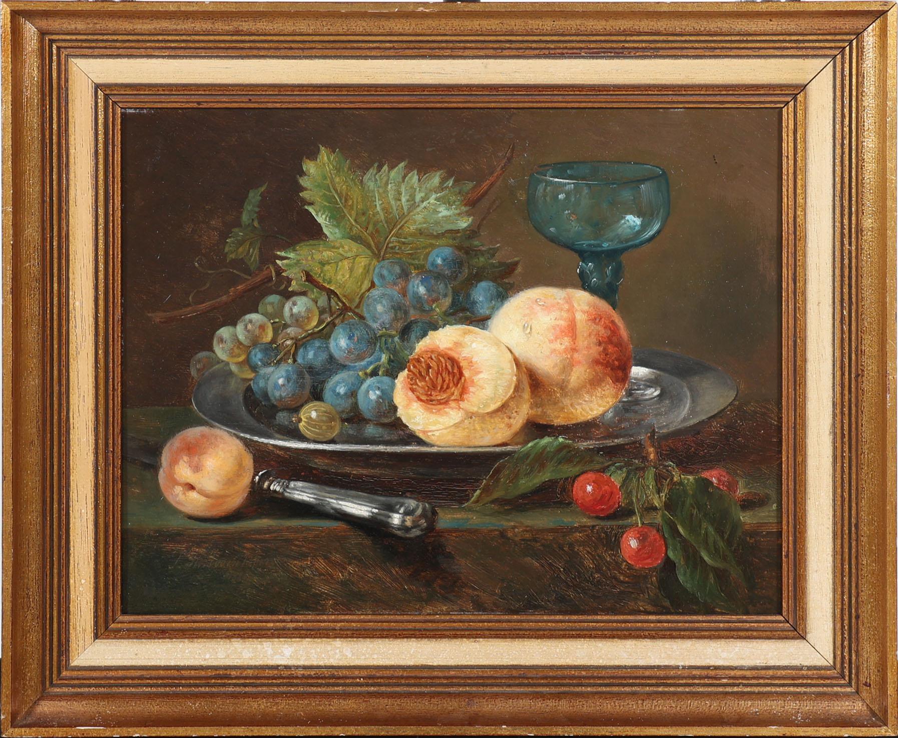 Sebastiaan Theodorus Voorn Boers (1828-1893), Stilleven met fruit, olieverf op paneel, 25 x 32,5 cm.