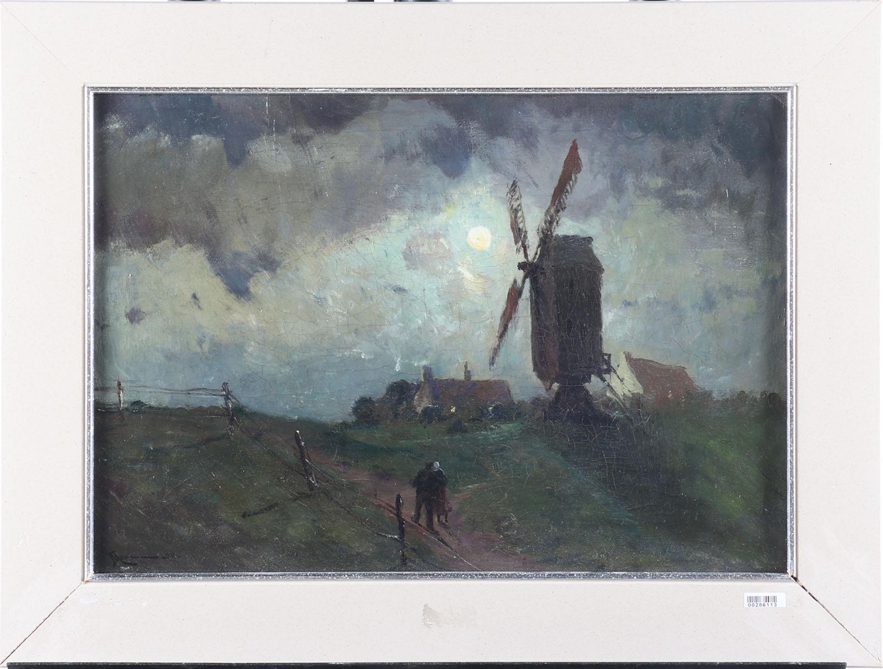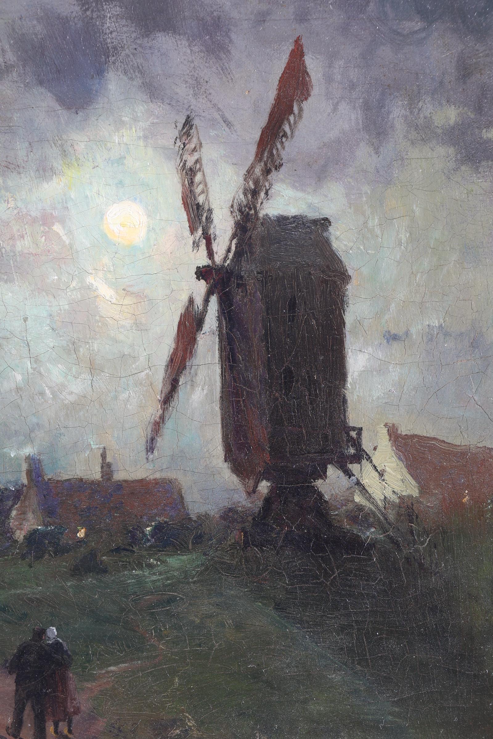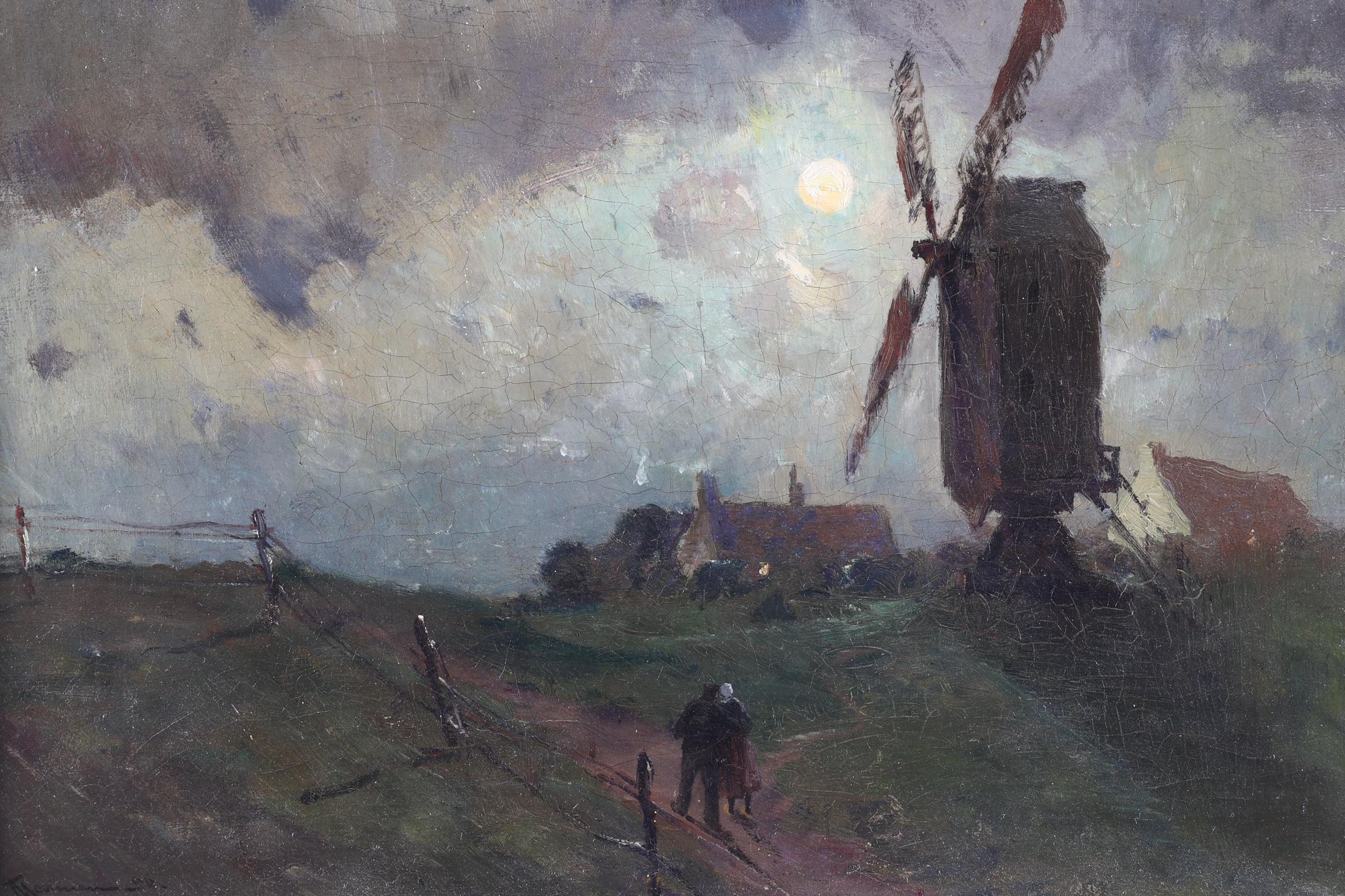Jan Ludovicus Moerman (1818-1896), Maanlandschap met molen, olieverf op doek, 36 x 50 cm.
