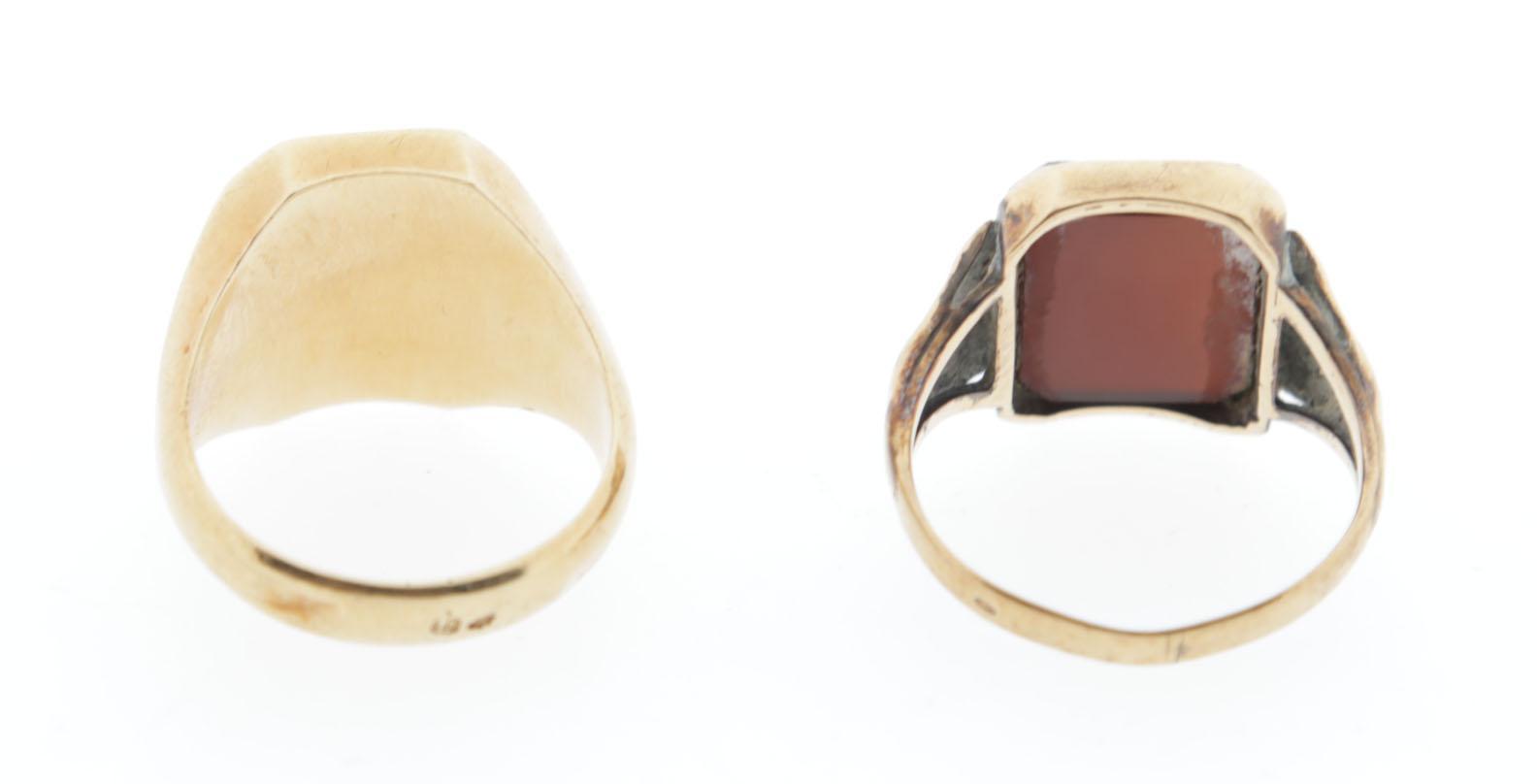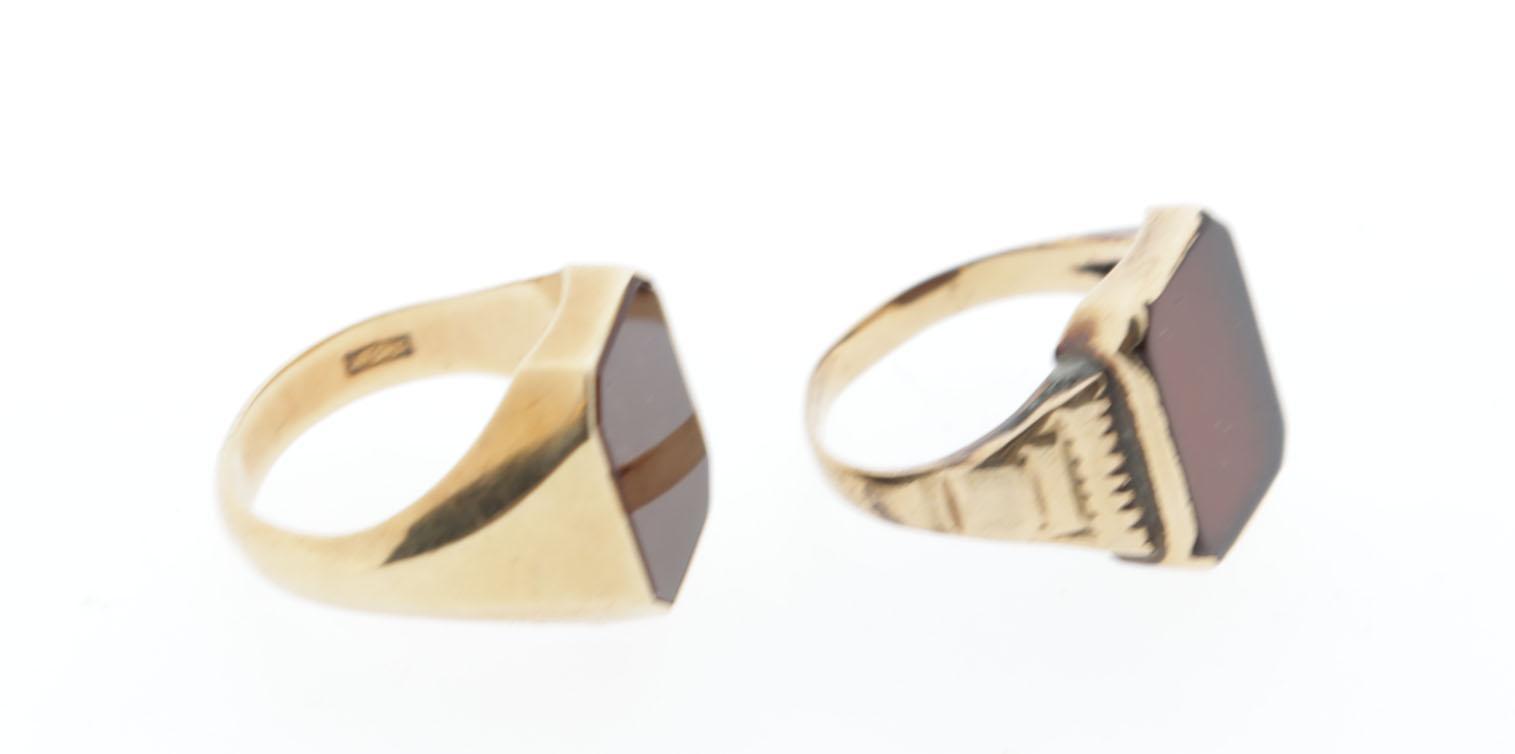 Twee 14 kt. gouden zegelringen, totaal 8,4 gram