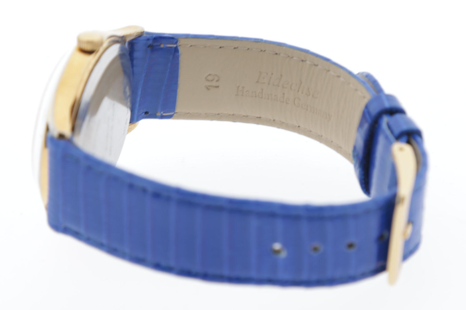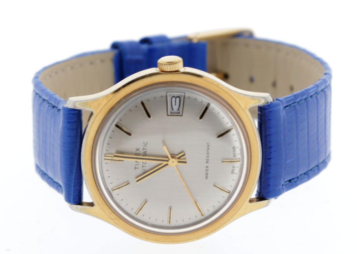 Vintage Timex polshorloge met blauw hagedissen lederen band, automaat