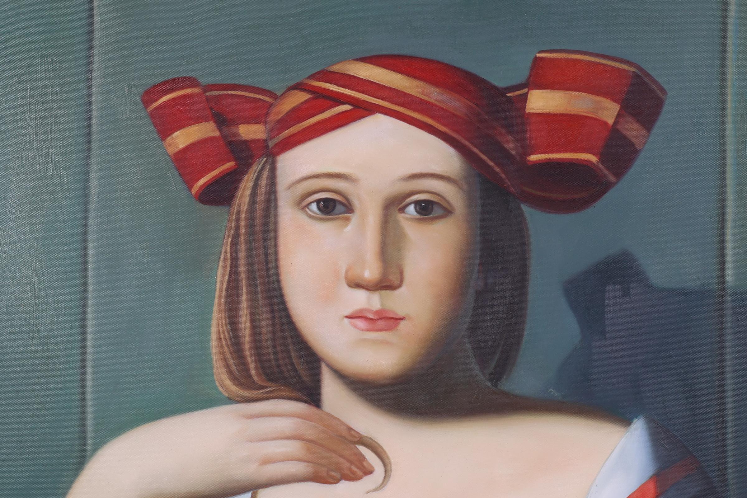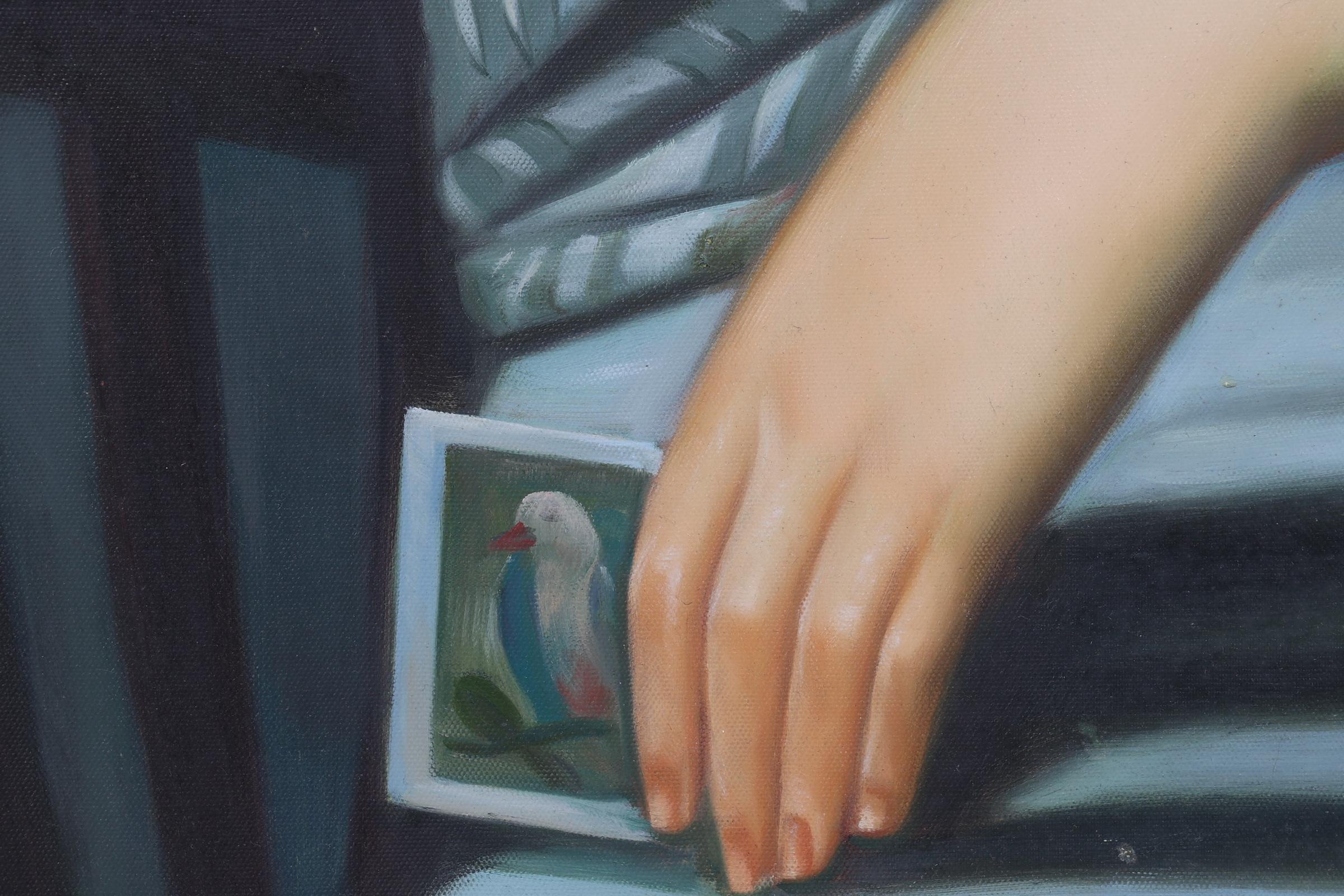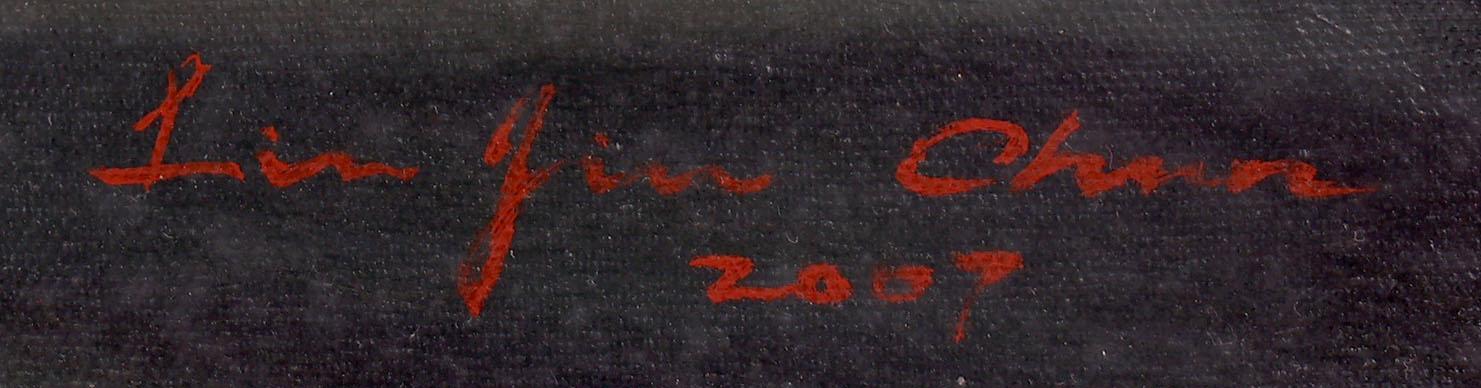 Lin Jin Chun (1983), Dame met waaier, acryl op doek, 79 x 99 cm.
