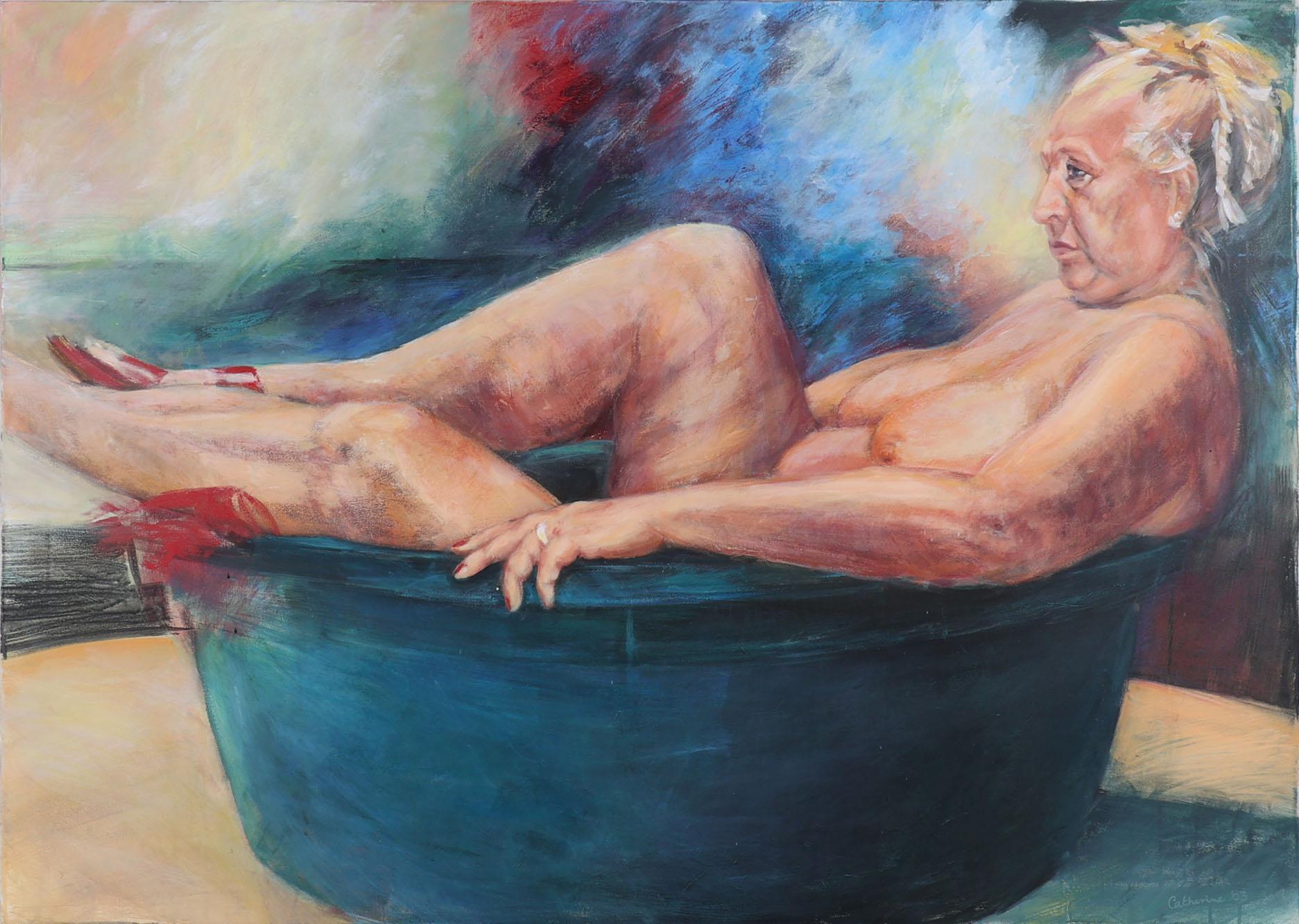 Catherine, Naakt in de speciekuip, olieverf op doek, gedateerd 2003, 140 x 100 cm.