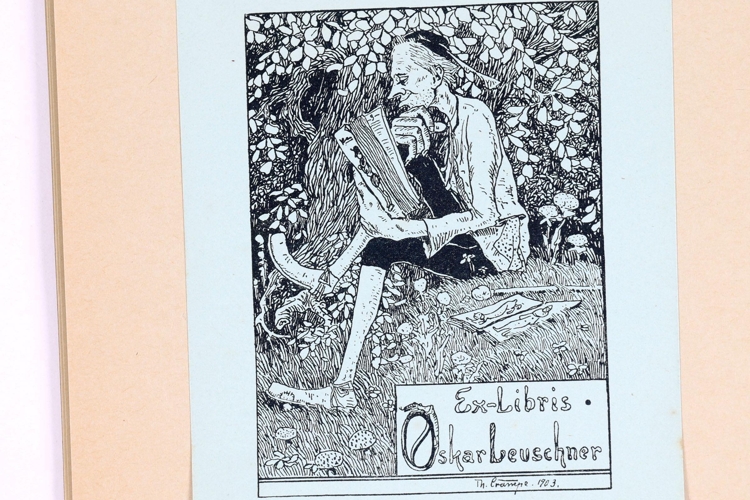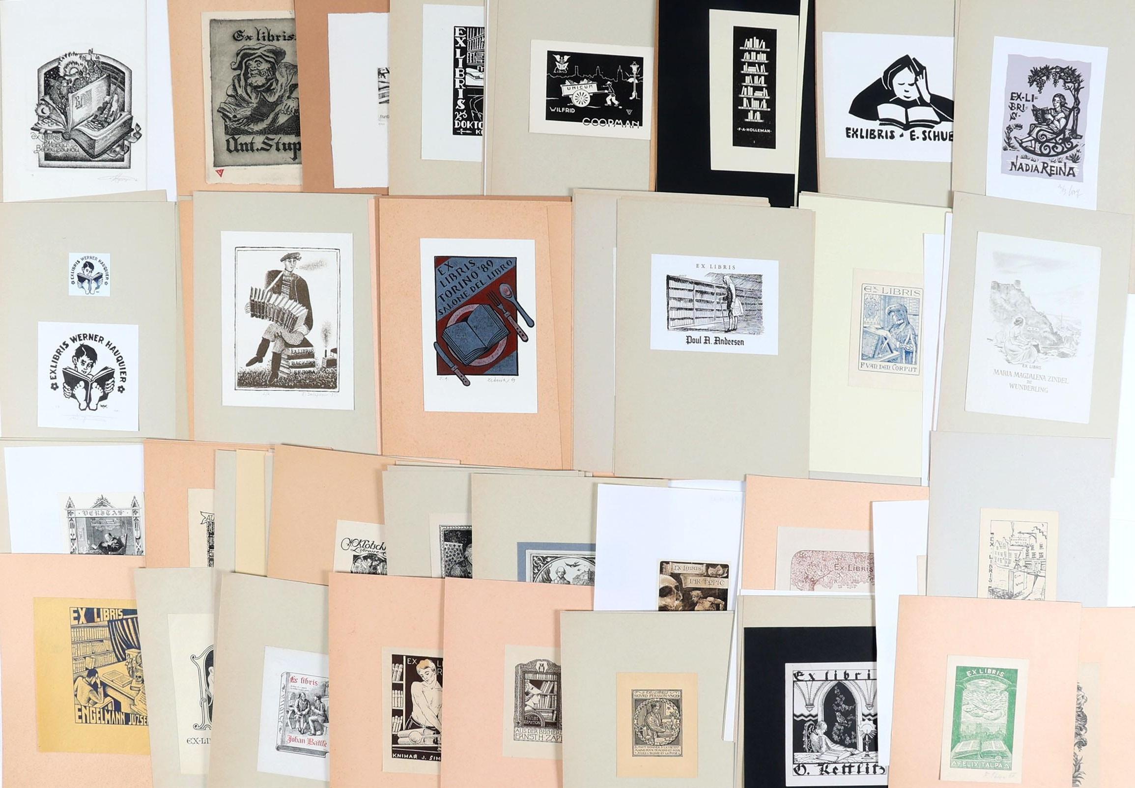 collectie plm. 115 exlibris, thema: lezen / boeken. Plm. 12 x diepdruk, rest hoogdruk / vlakdruk. Hiervan plm. 45 x gemaakt voor 1940. Deels gesigneerd, opgeplakt. Kunstenaars oa.: Barloesius, Crampe, Heroux, Hewitt, Novak, Nagel, Oliva, Schulze, Rheude, Rytir, Zeman, Zeitner, De Vries, Volkamer, Vereschagin, Vodickova, Wijdeveld, Zednik, Zierold