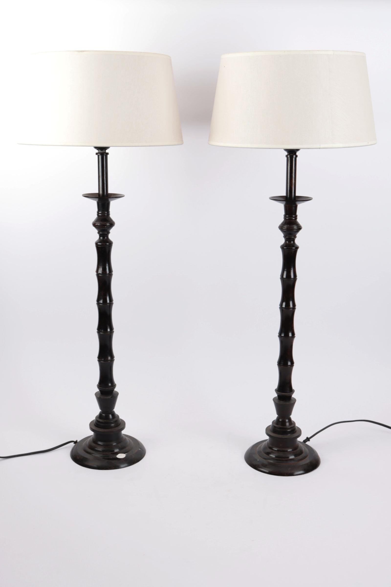 Stel moderne schemerlampen met beige kappen, h.77 cm.
