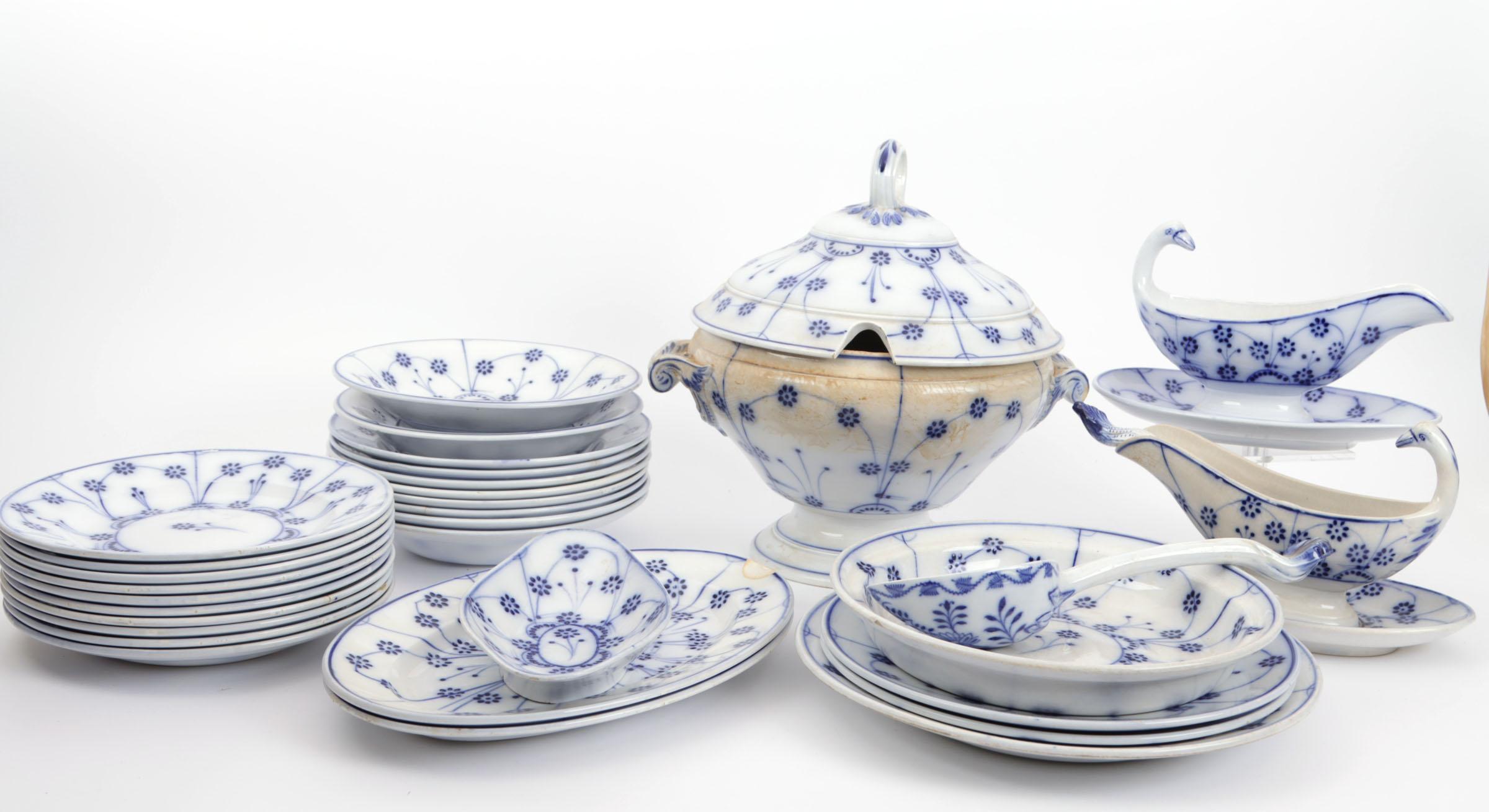 Sarreguemines, blauw/wit aardewerken serviesdeel