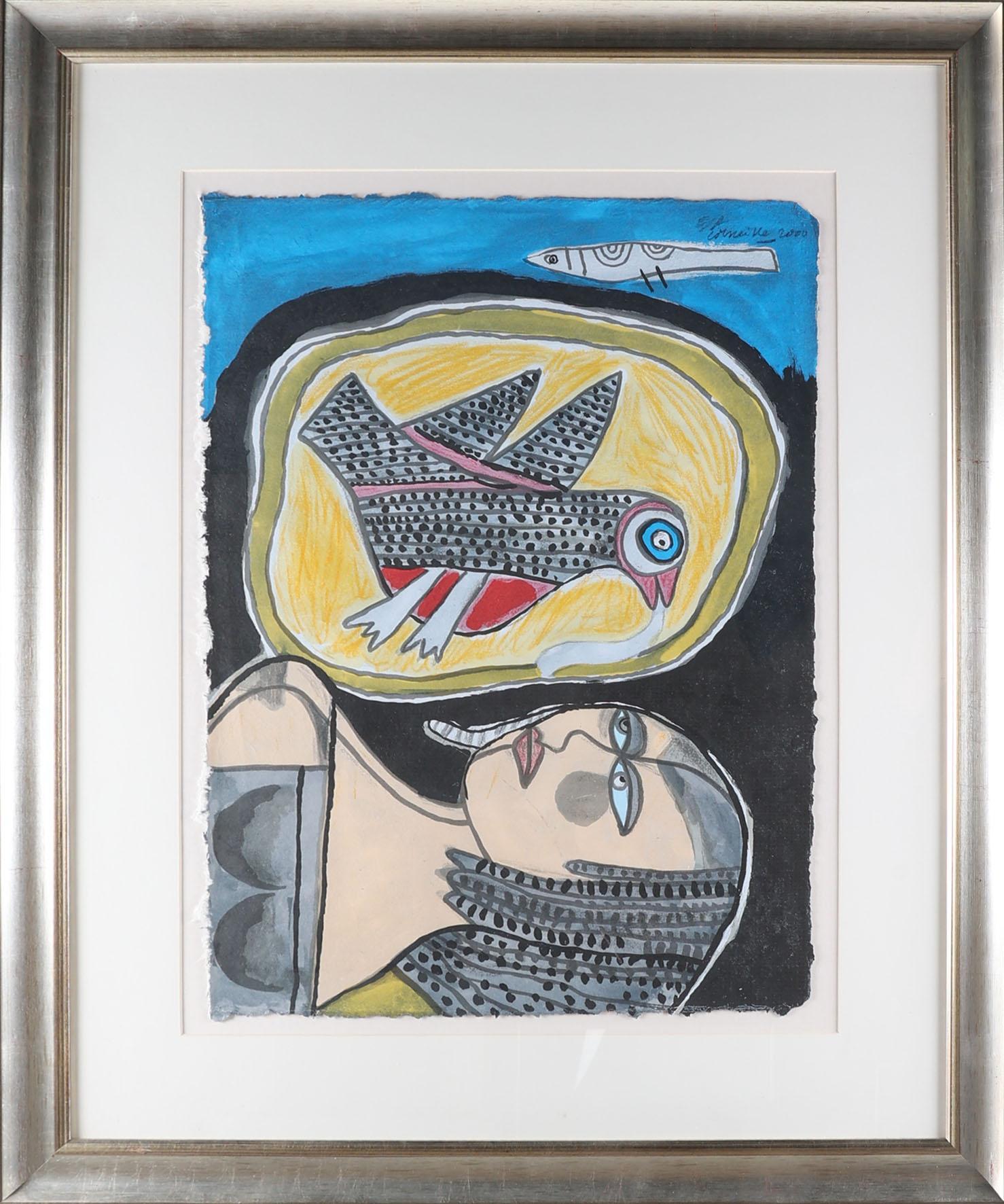 'Corneille', alias van Cornelis Guillaume van Beverloo (1922- 2010), Vrouw met vogel en vis, zeefdruk op handgeschept kokospapier, gesigneerd en gedateerd 2000, 75 x 55 cm. of 106 x 87 cm. Provenance: collectie kunsthandel Elisabeth den Bieman de Haas, Amsterdam
