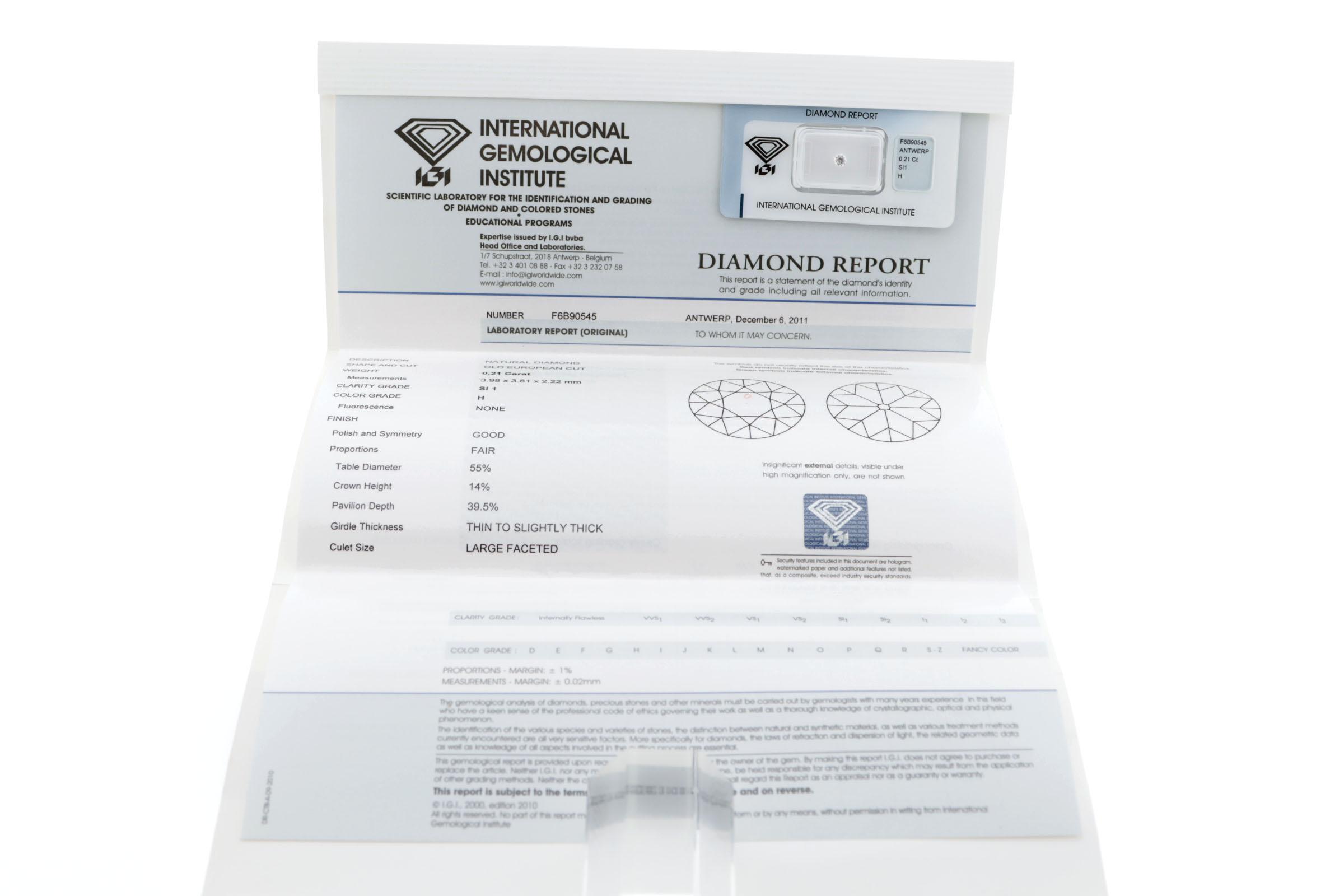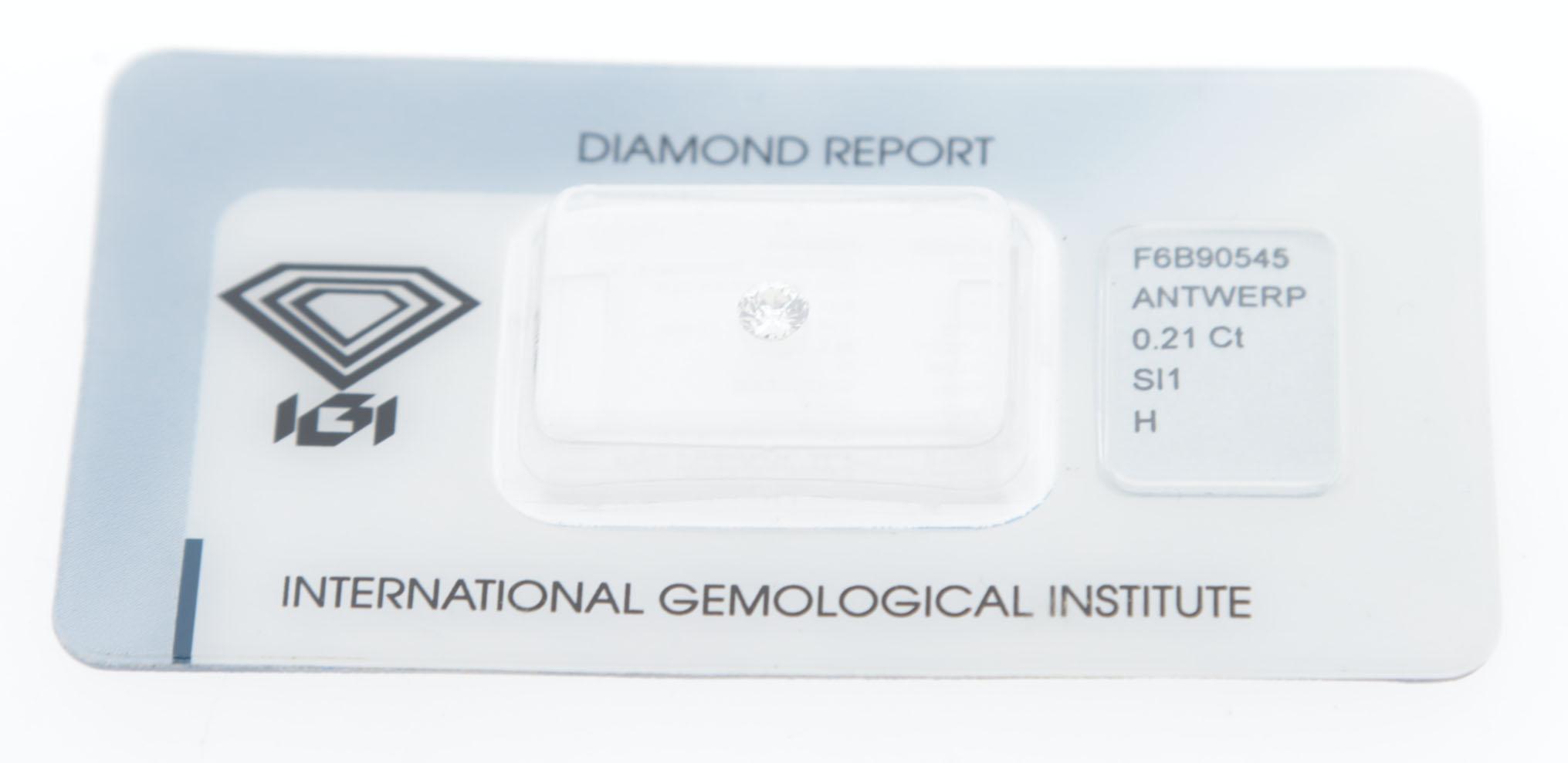 Oud Europees geslepen diamant, 0.21 ct., SI1, H, met diamant rapport van het International Gemological Institute Antwerpen