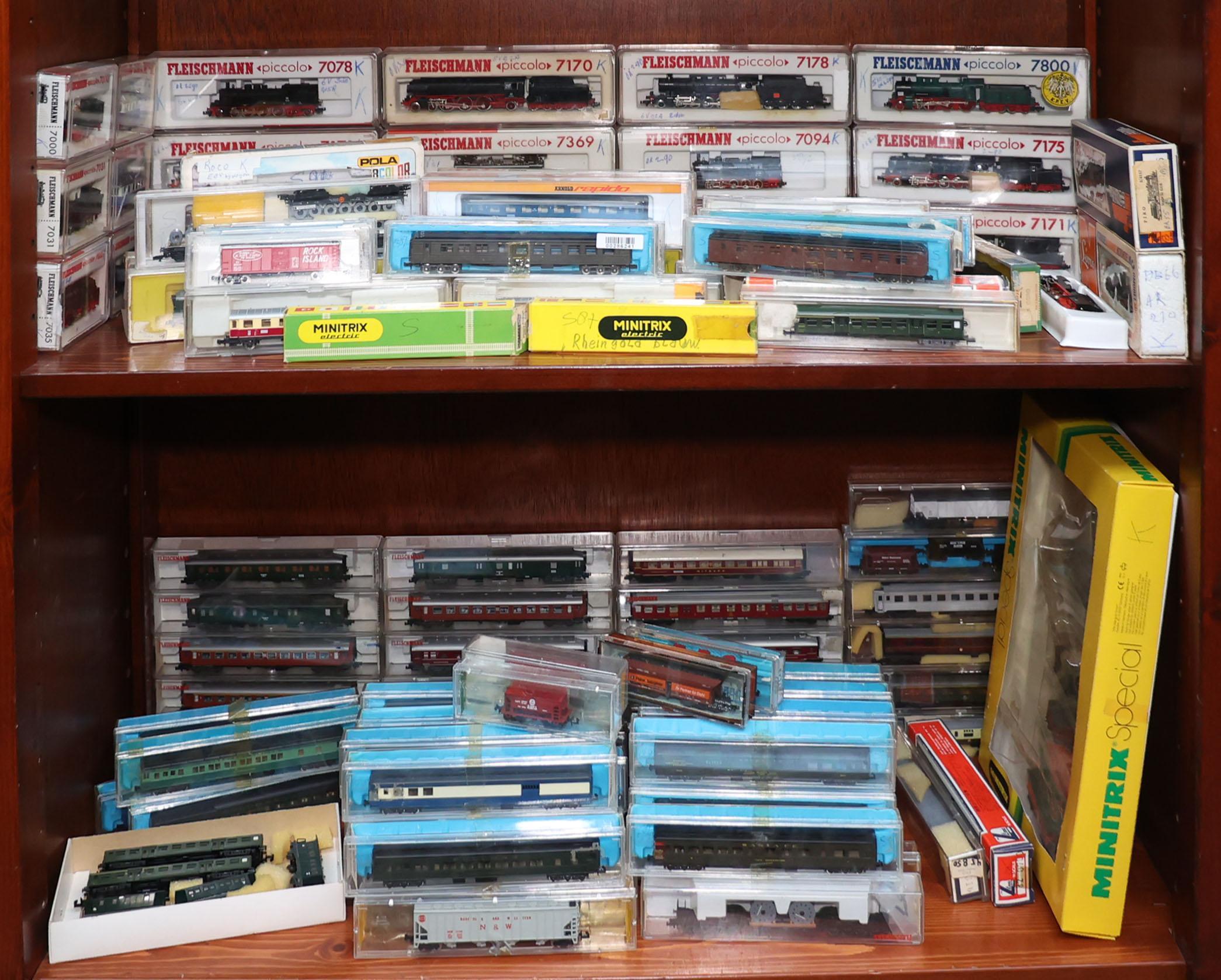 Koop diverse modeltrein locomotieven en wagons, N spoor (2 planken)
