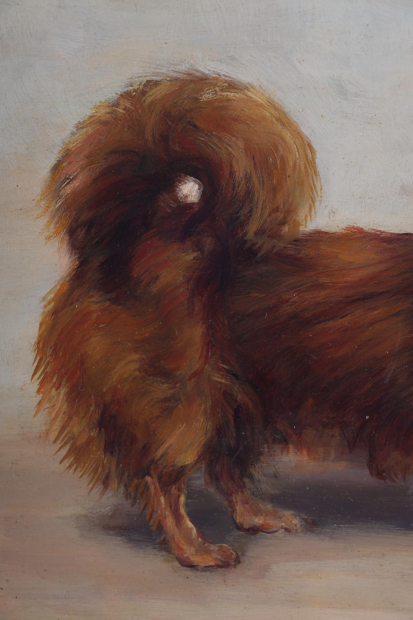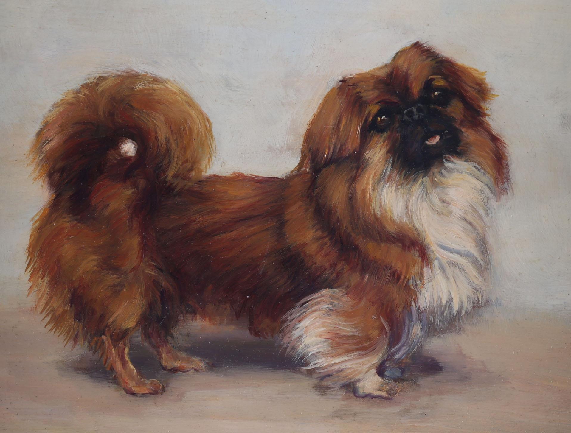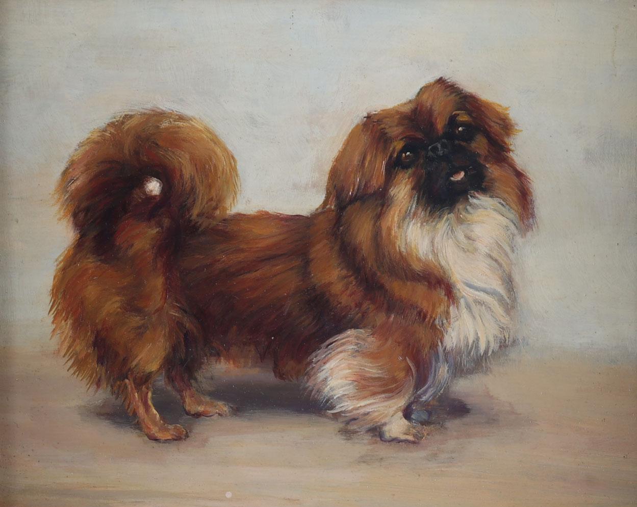 Onb.meester, Portret van een Pekinees, olieverf op paneel, 24 x 29 cm.