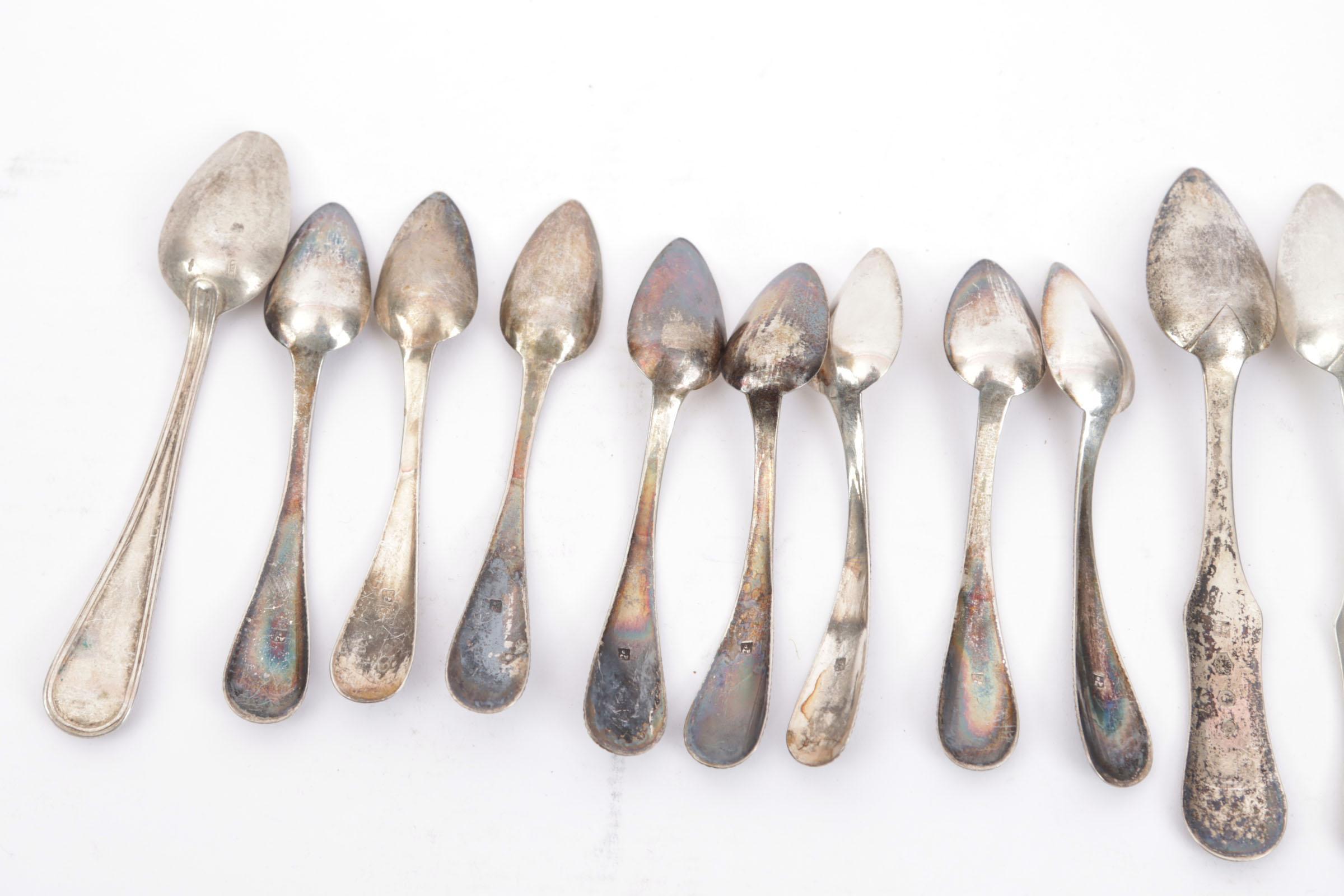 Koopje diverse 2e gehalte zilveren lepels, etc., 200 gram