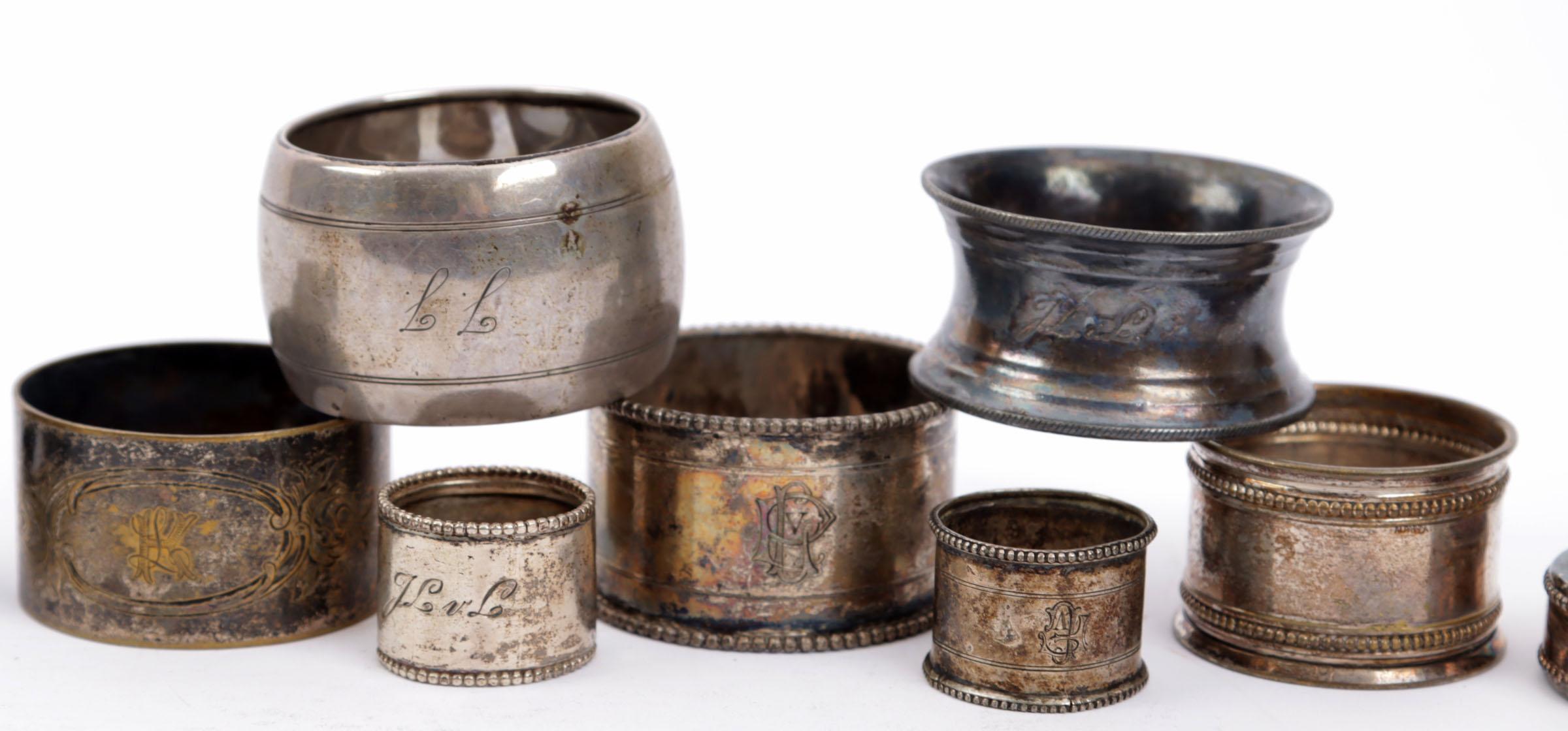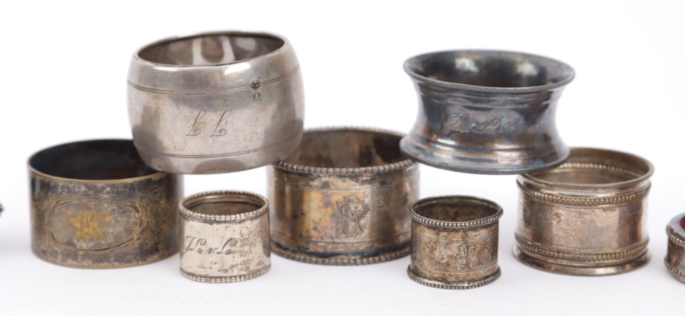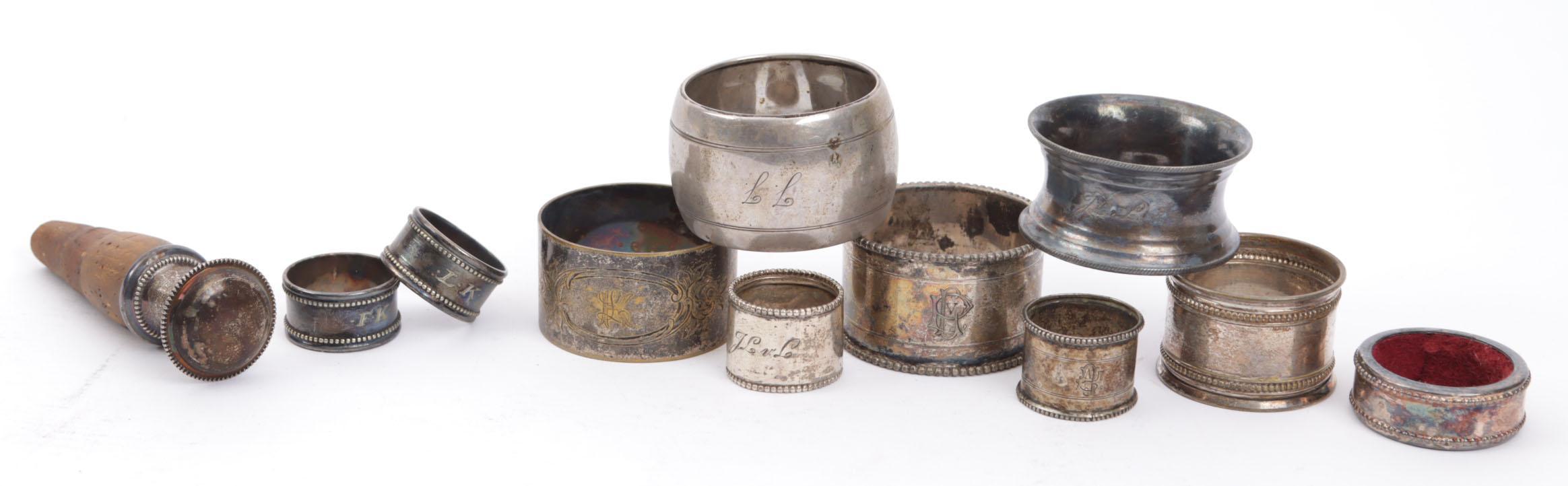 Koopje diverse zilveren servetbanden, kroonkurk, etc.