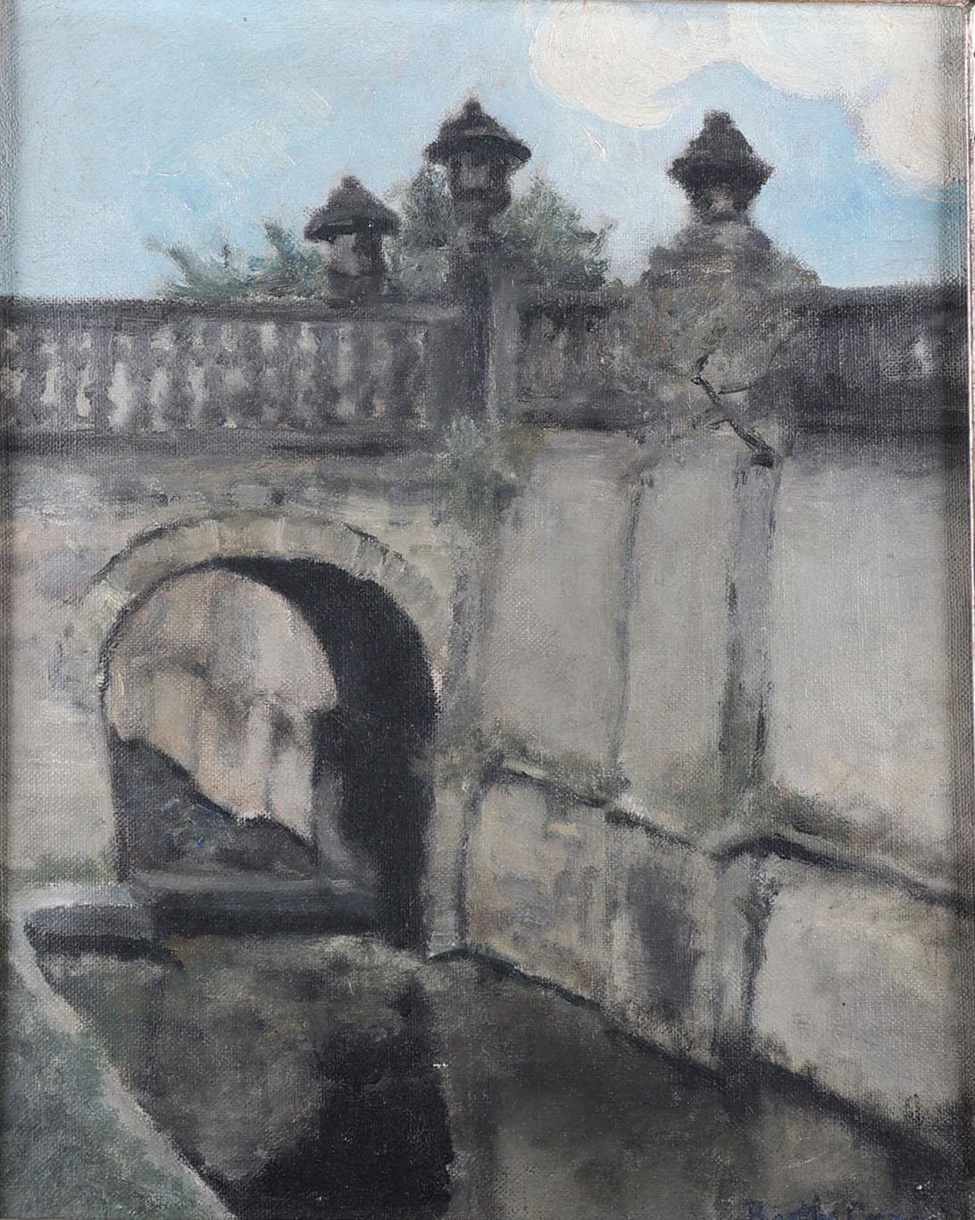 Bertha Coenen (1913-1968), Entree van Chateau Beaulieu te Machelen, België, olieverf op doek, 35 x 27 cm.